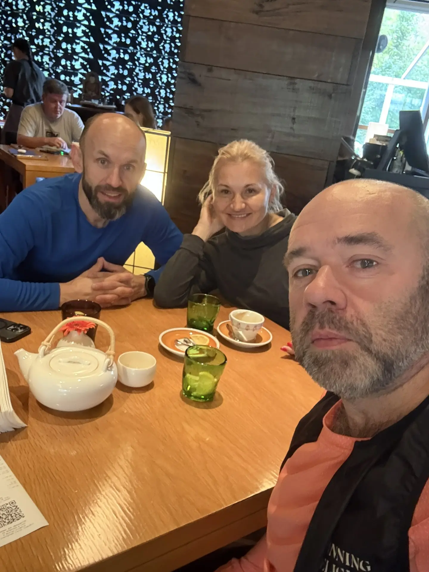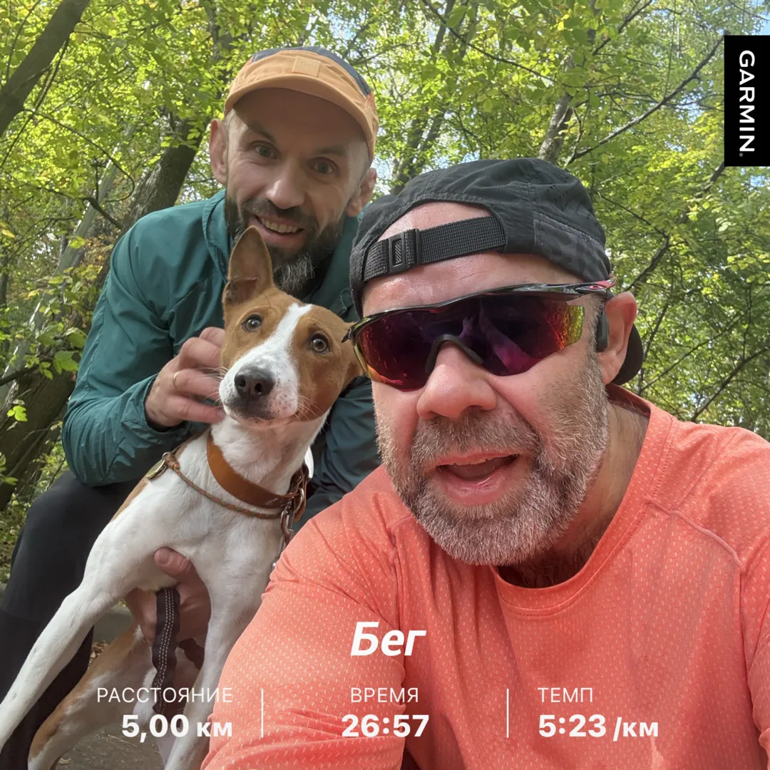 Все-таки побегали легонечко 5 км с ускорением (1 км по 4:10) внутри с Евгением и Шопеном (по центру).