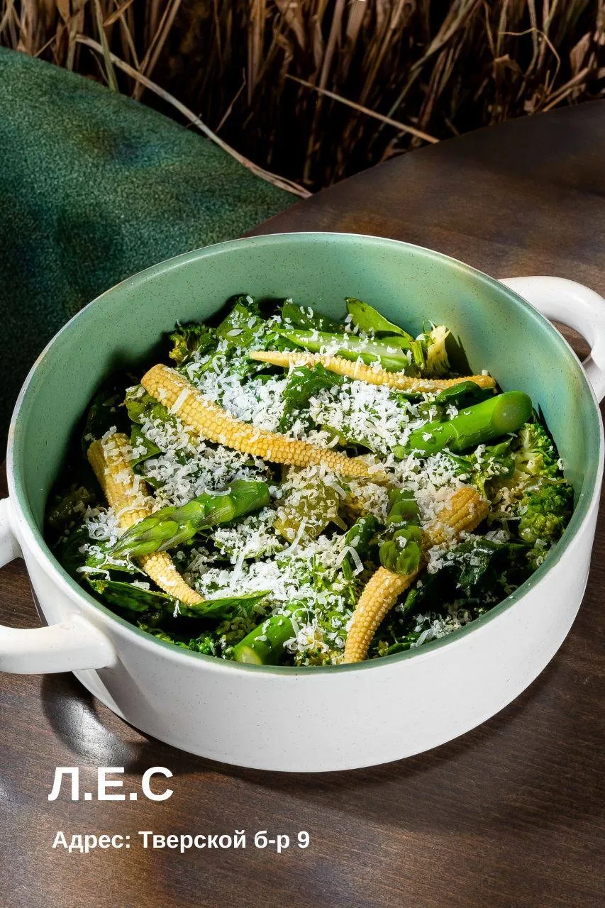 ▪️Л.Е.С — картофельные ньокки с белыми грибами и сметаной из кешью (990₽), зелёный салат Л.Е.С (930₽), грибная похлёбка с копчёной сметаной (820₽), постные конфеты с мёдом (200₽).