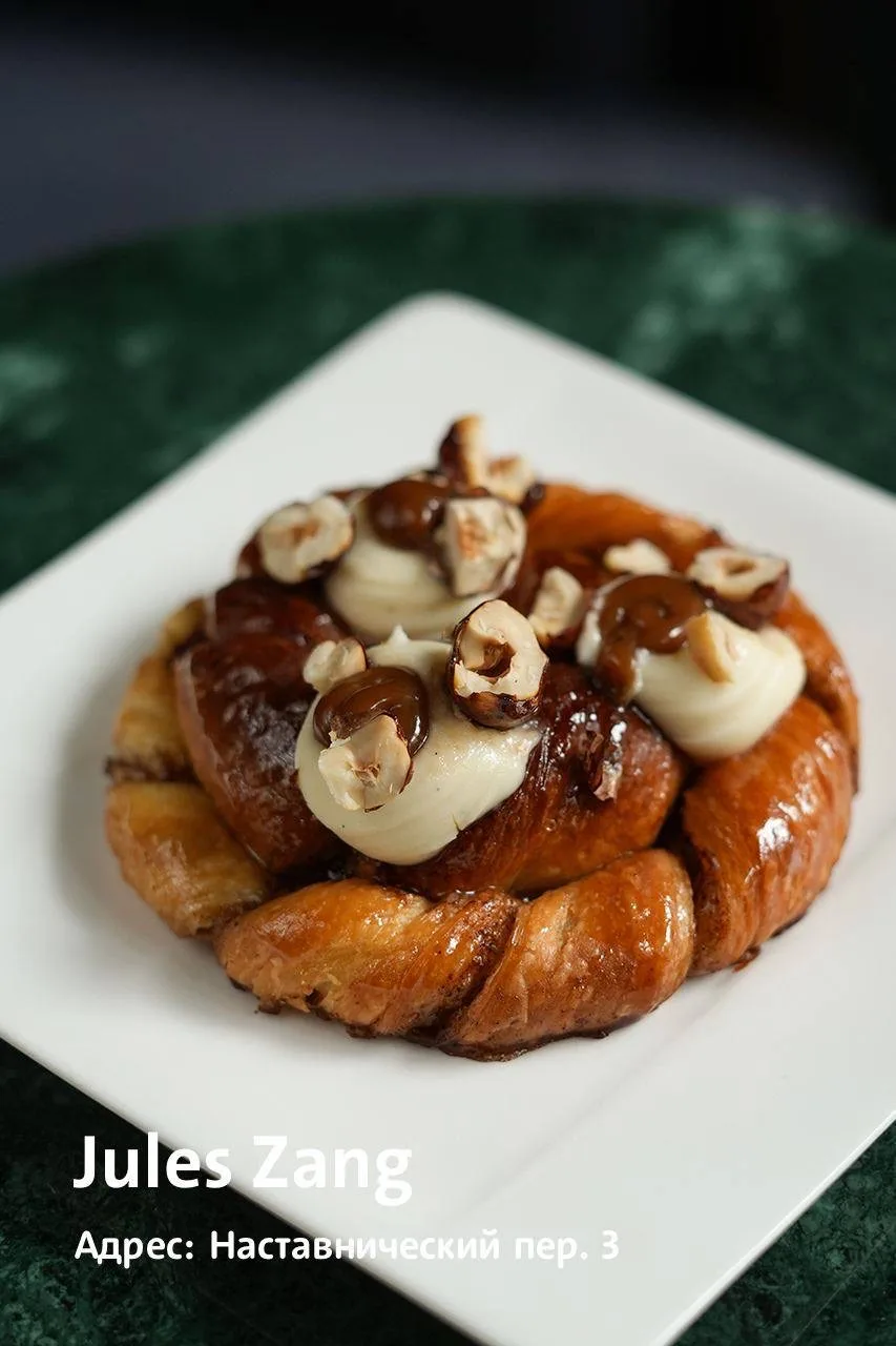 ▪️Jules Zang — из слоеного теста, с цейлонской корицей, тростниковым сахаром, сливочным кремом, соленой карамелью и орехами (430₽).