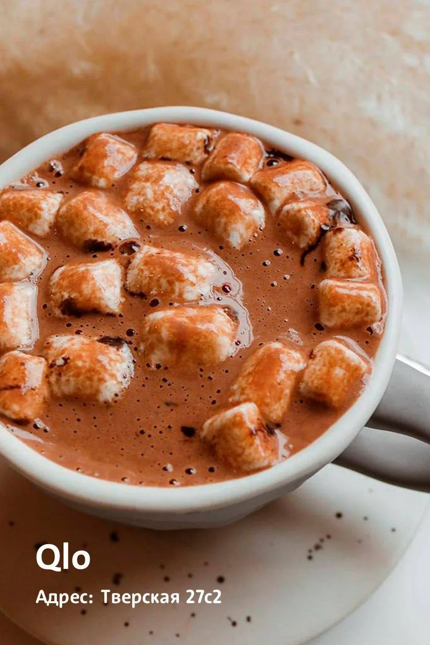 ▪️Qlo — какао с маршмеллоу (470₽). На выбор есть классическое какао (450₽). Насыщенный шоколадный вкус с приятной сладостью.