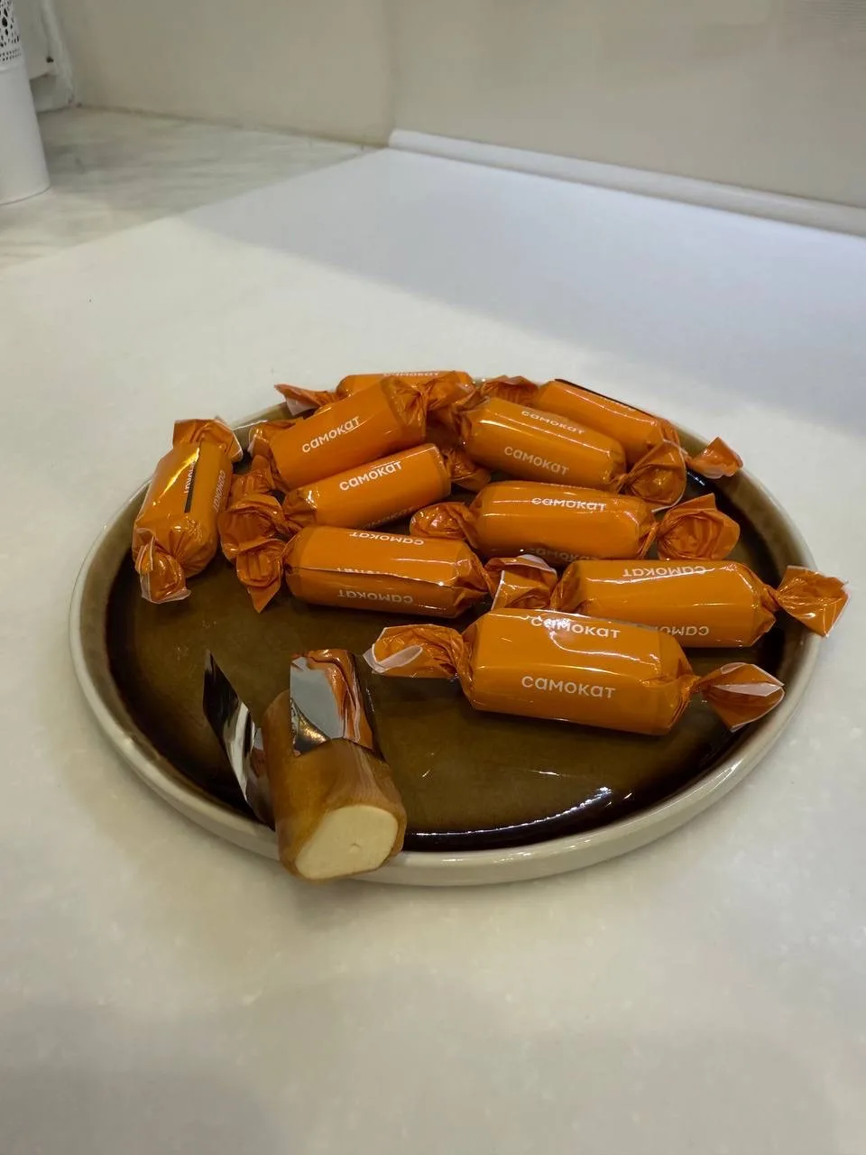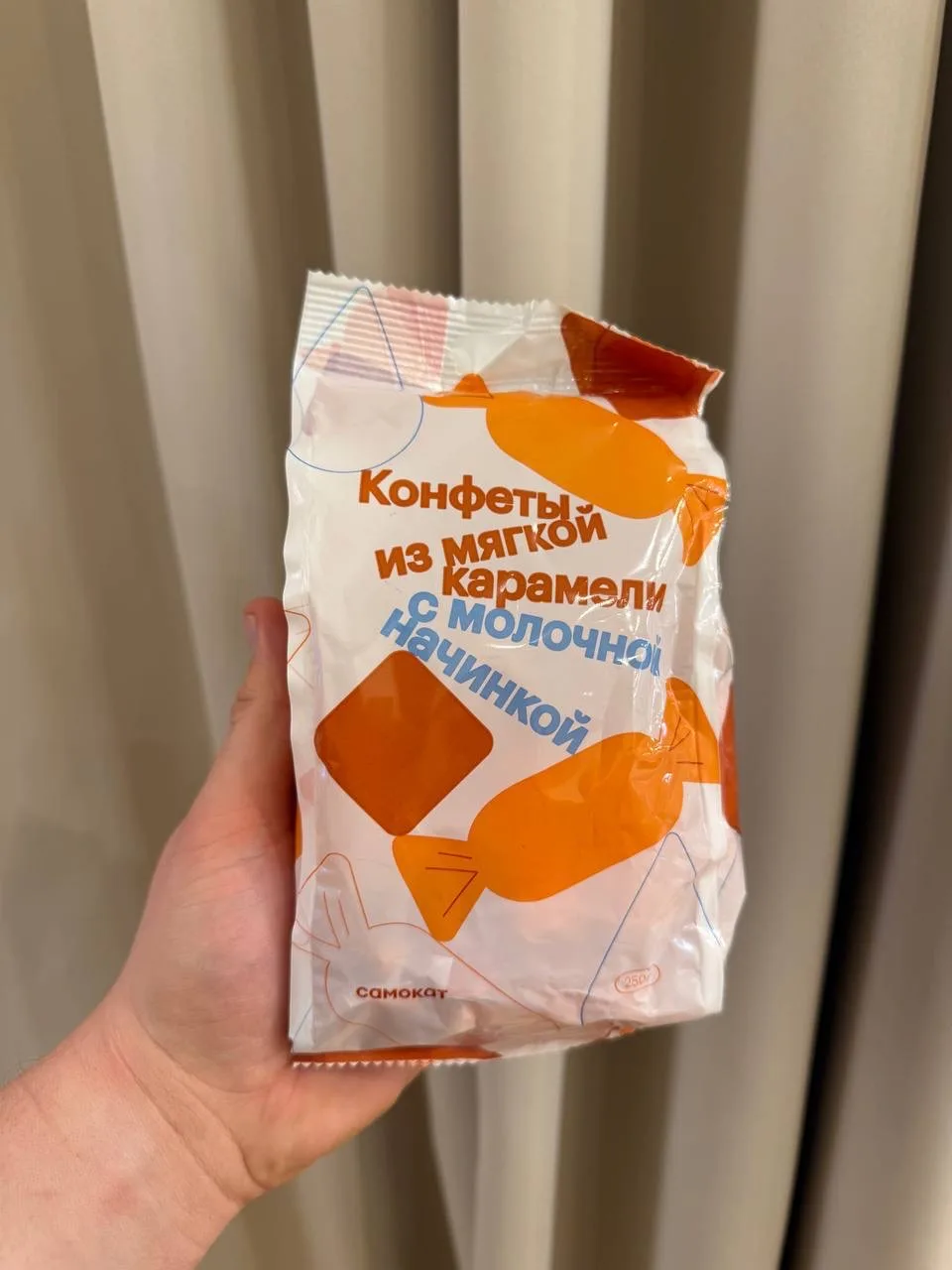 Снаружи тонкий слой карамели, внутри нежная молочная начинка, слегка рассыпчатая текстура, похожа на подсушенную сгущенку. Прикольное сочетание карамели и нежной молочной начинки. Но вынужден предупредить, что они очень сладкие. Без чая съесть больше одной невозможно.
