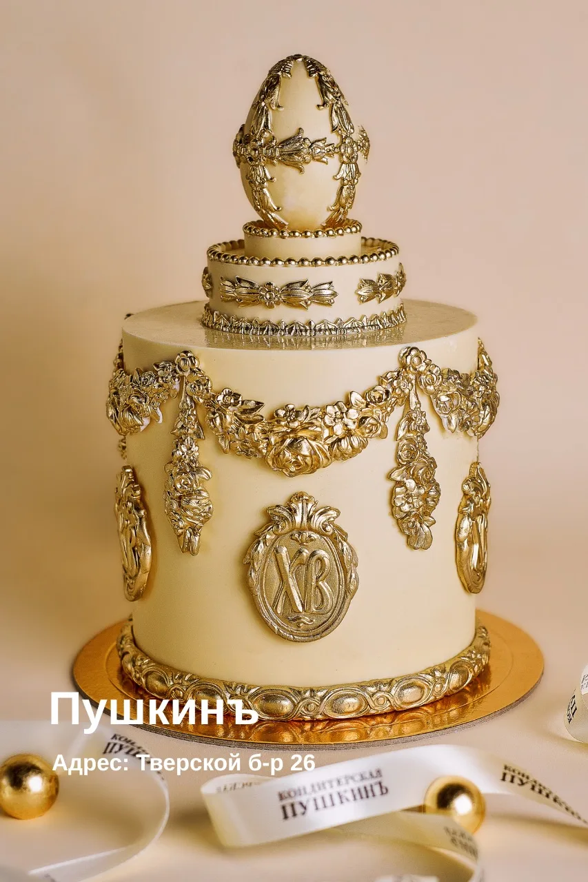 ▪️Гвидон — Жар-Птица (30.000₽). Воздушное тесто на натуральной закваске, цукаты, шоколад, полностью покрыт сусальным золотом.