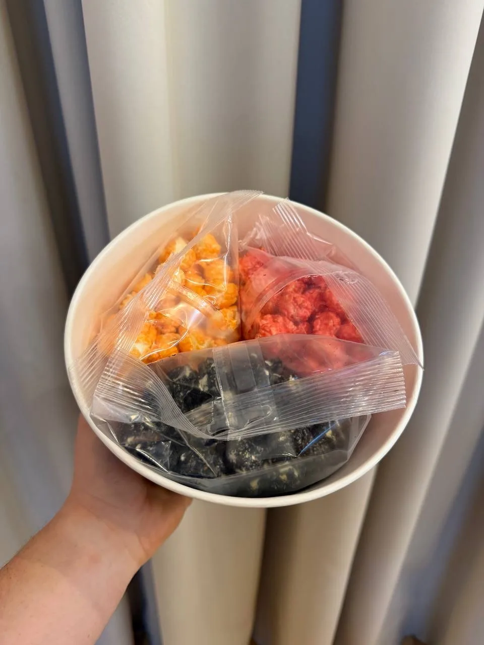 Карамель — классическая, без сюрпризов. С манго — приятный, без химозности. А барбарис вообще отдельный кайф: прям как конфеты, только с попкорном.