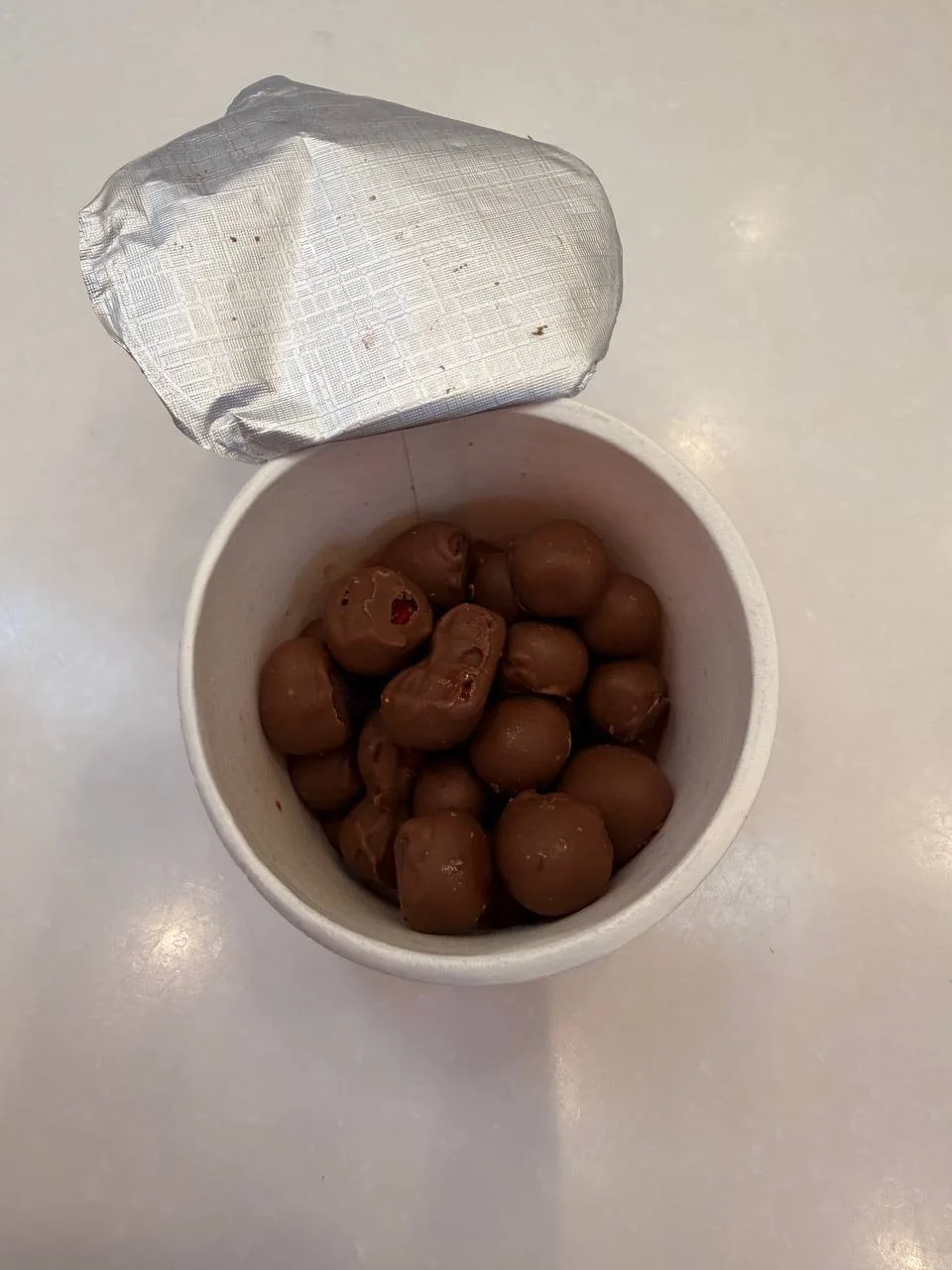 Всего 60г, из которых земляники, дай бог, 30. Тут, в отличие от малины, только слой молочного шоколада, без белого. Да, это вкусно. Да, это очень дорого. Если у вас много бабок, попробуйте, если не много, то не пробуйте, на этом у меня всё 😃