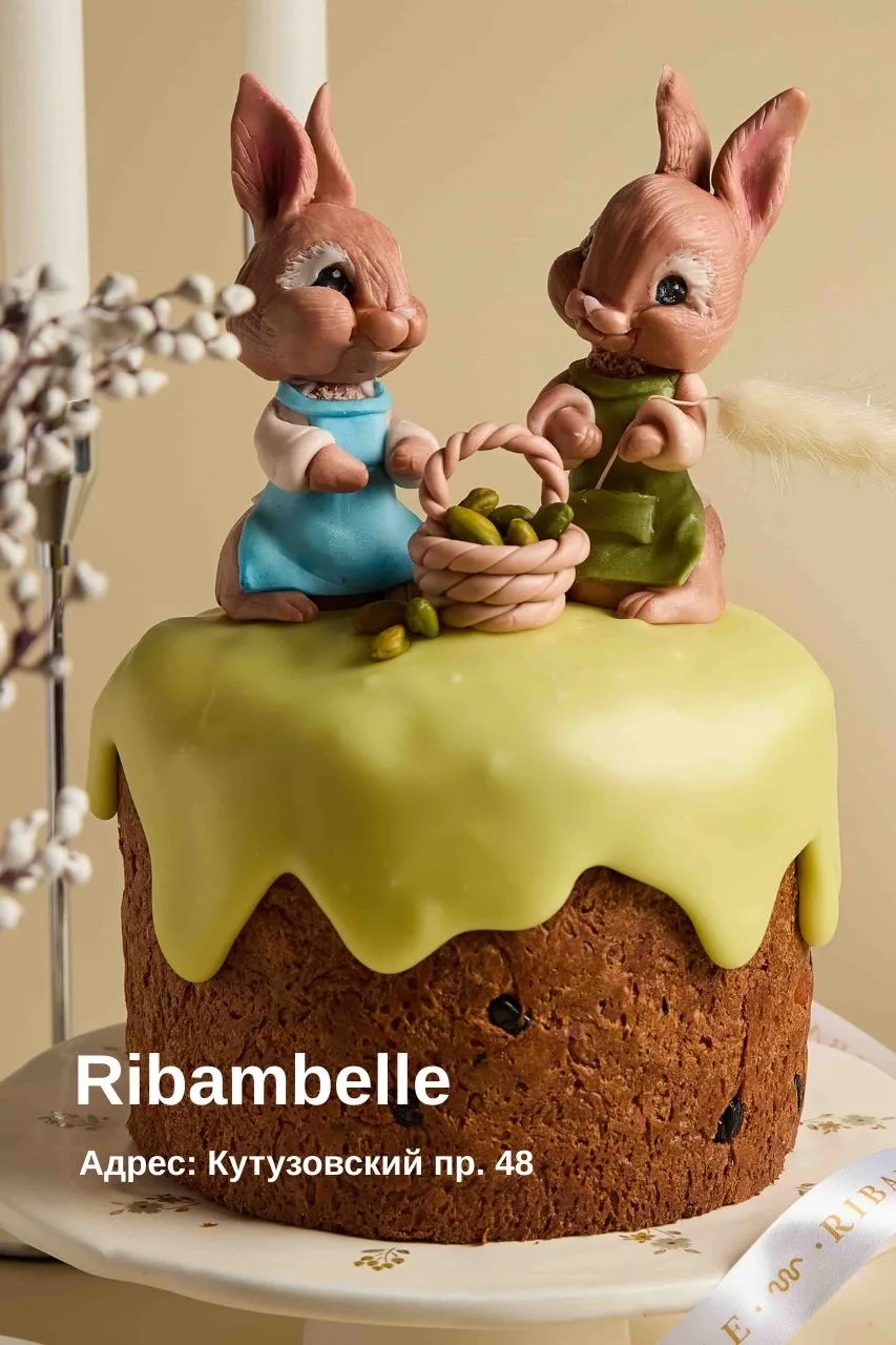 ▪️Ribambelle — Зайчата на полянке (7500₽). Цедра лимона, изюм, вяленая клюква, цукаты, фигурки из мастики, фисташки.