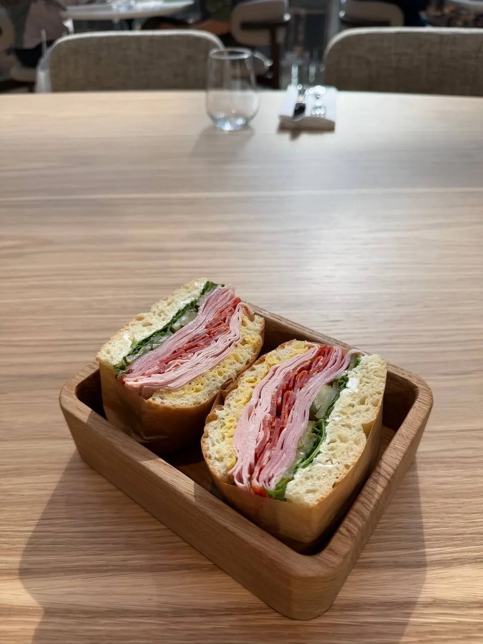 Это уже 3 точка сети. Все сэндвичи есть в готовом виде, но лучше просите из под ножа, кстати, их можно брать по половине. Отличный проект, что-то типа «Кофемании без тарелок», только с более гуманным ценником и, местами, вкуснее.