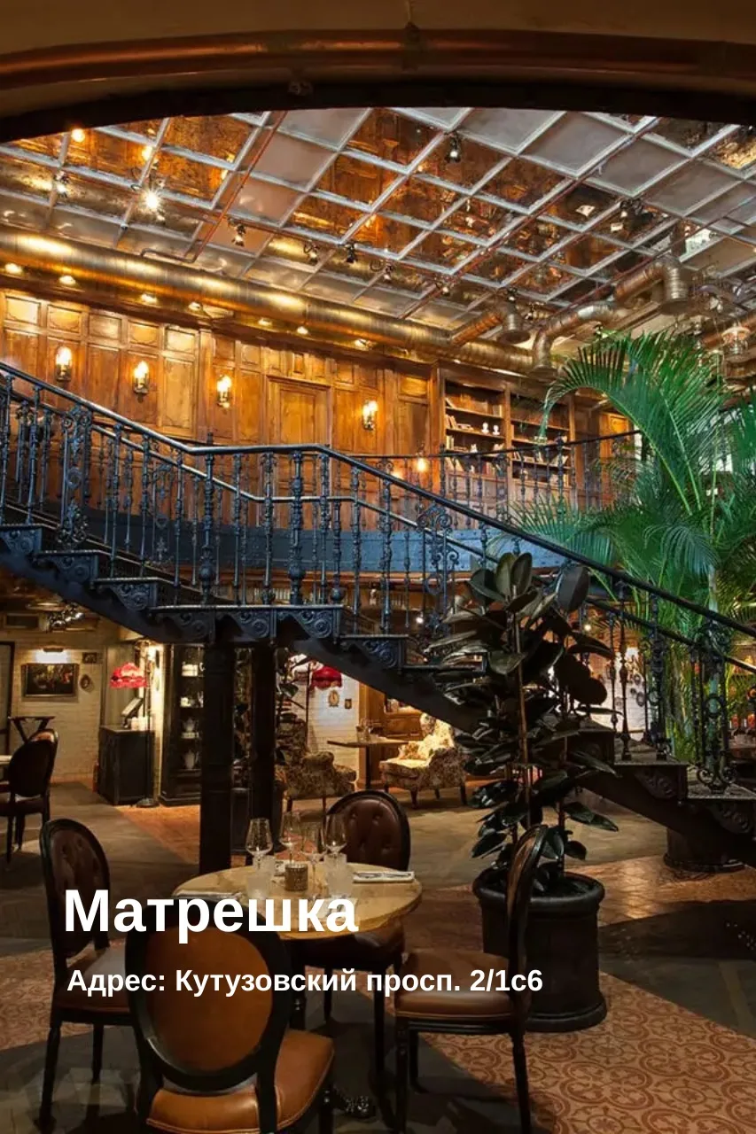 ▪️Матрешка ― ресторан русской кухни от Maison Dellos. Два этажа богатого дворянского интерьера с чугунной лестницей и камином, продукты привозят из регионов: рыбу из Якутии и с Камчатки, орехи с ягодами из Подмосковья, а мед из Башкирии.