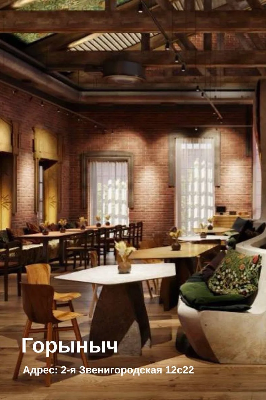 ▪️Горыныч — двухэтажный мясной ресторан от WRF, продолжает концепцию проекта Зарькова и Мухина: современная интерпретация кухни открытого огня.