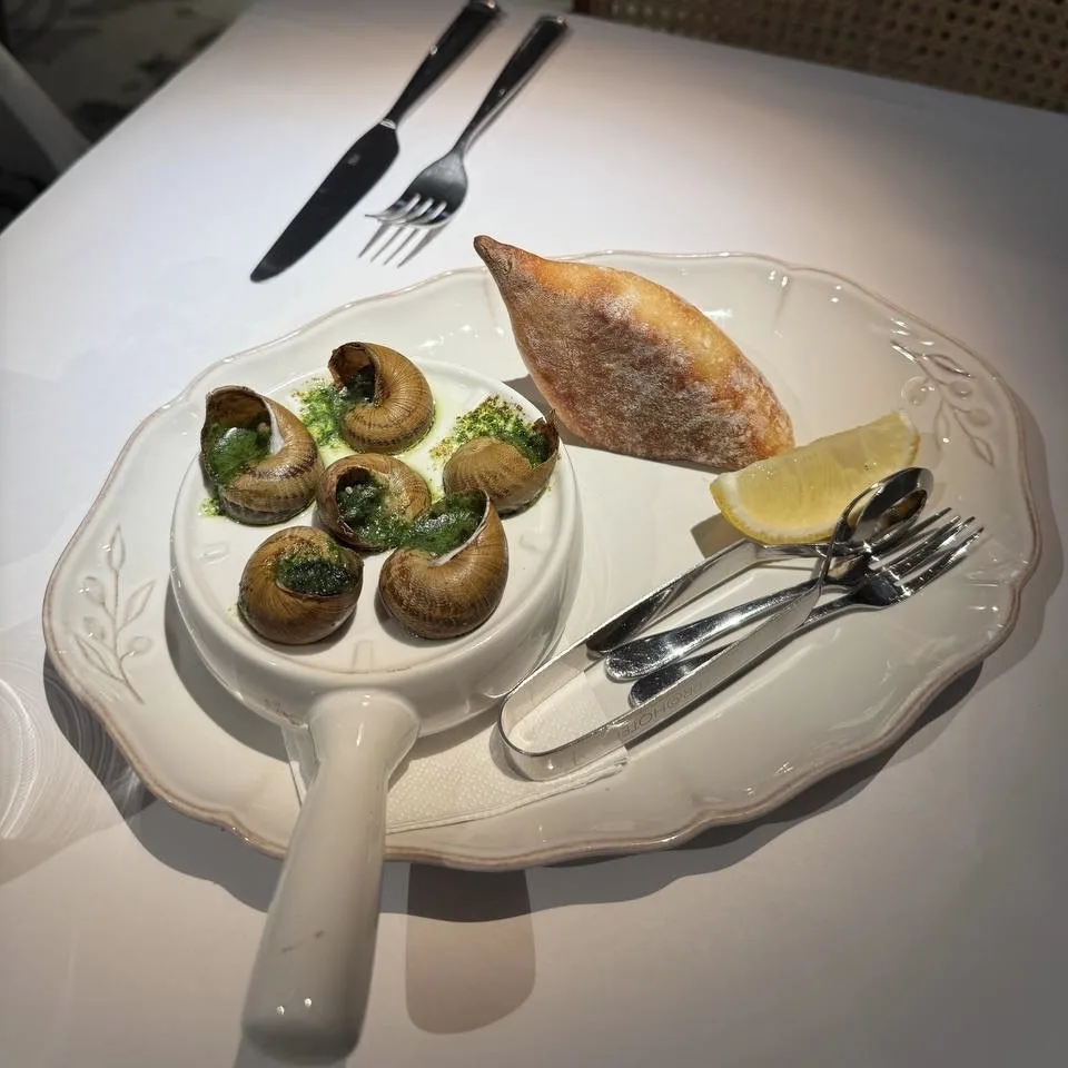 ▪️Улитки (920₽) — со сливочным маслом, зеленью и чесноком. Подают с лимоном и багетом. По вкусу — что-то между креветкой и мидиями. Средняя плотность, чистый вкус из-за чеснока понять сложно. Не бойтесь пробовать, это вкусно.