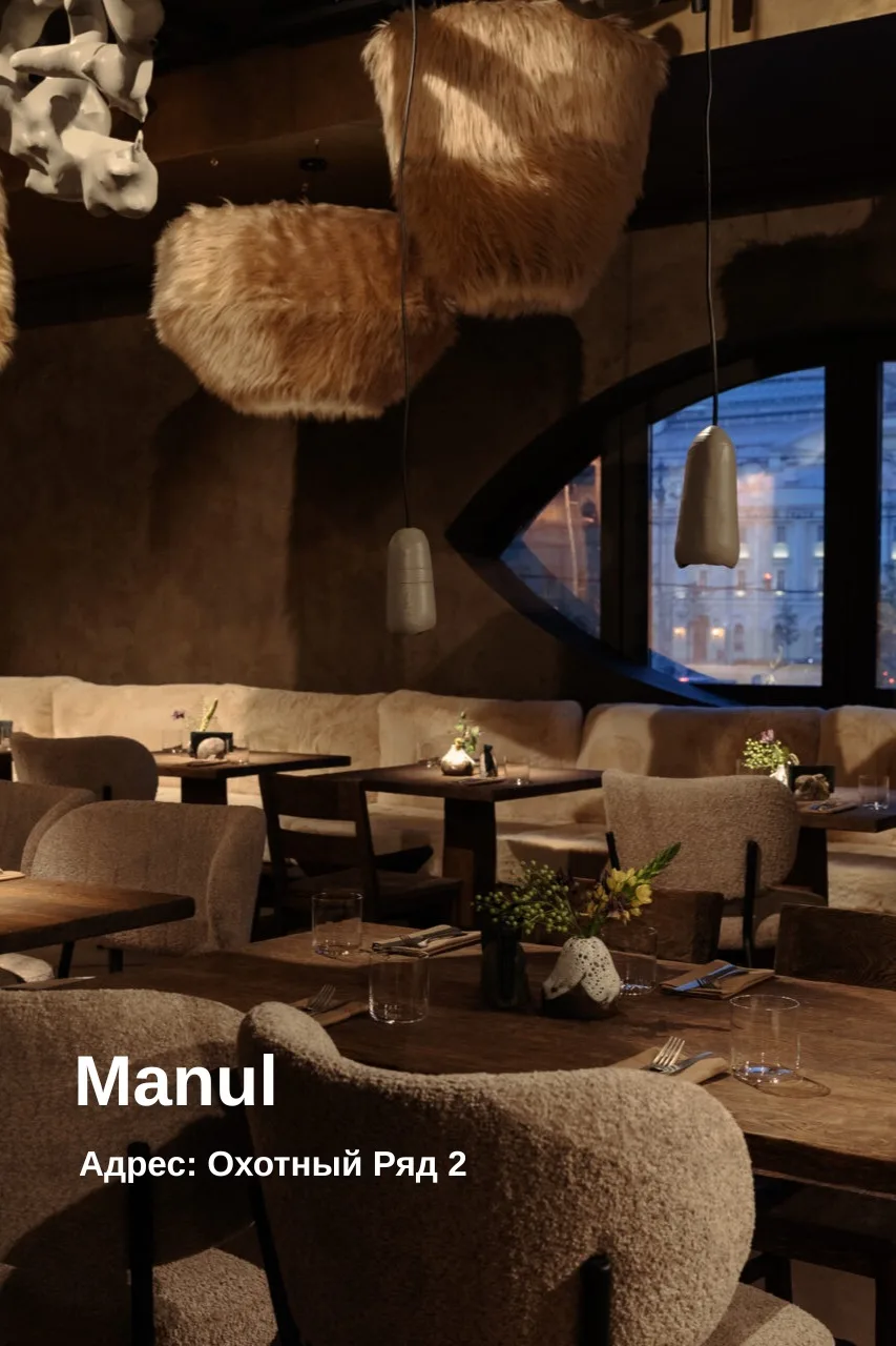 ▪️Manul — ресторан кухни народов Сибири, в интерьере атмосфера дикой Сибири с её суровой природой и древней культурой, приглушённый свет, как в юрте, посуда, вручную выточенная из камня.