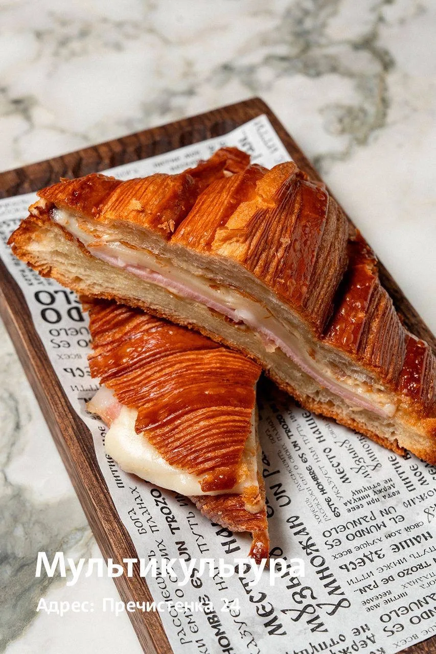 ▪️Мультикультура — круассан-бикини, придавленный прессом, с ветчиной и сыром (750₽).