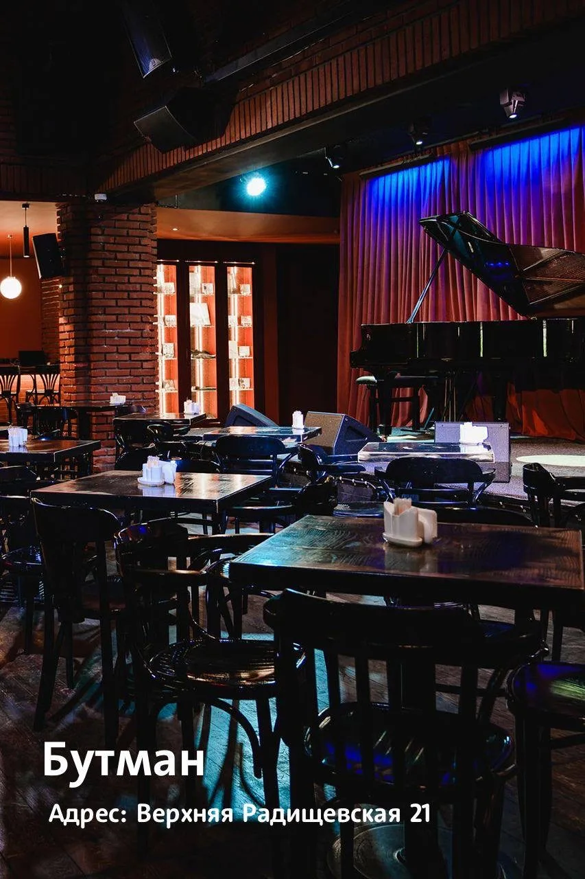 ▪️Бутман — джаз-клуб Игоря Бутмана входит в топ-150 мировых джазовых клубов по версии «Downbeat». Нет танцевальной зоны и партера, почти все посадки — за столиками. Меню с акцентом на закуски, также есть горячее, салаты и другие.