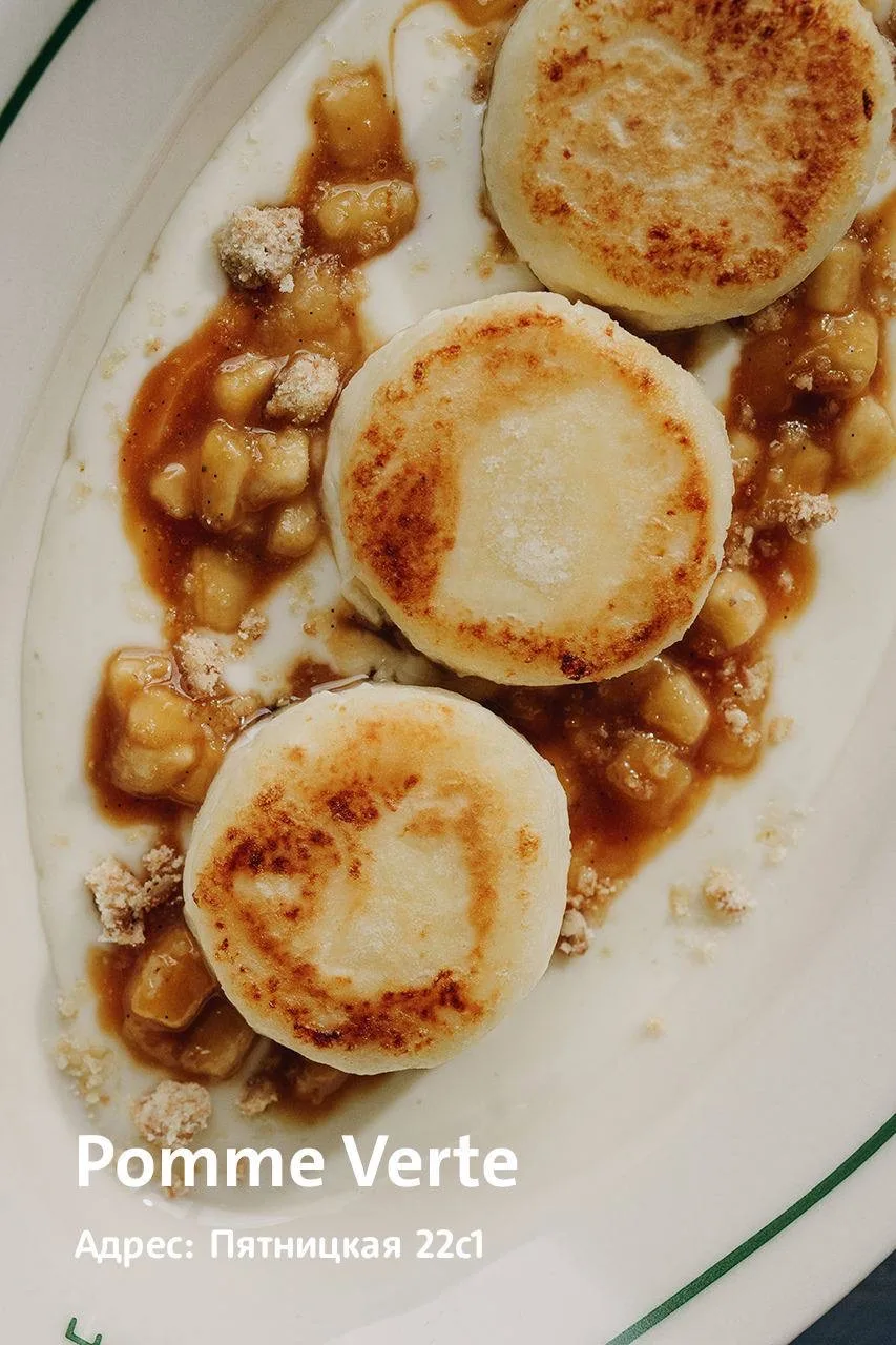 ▪️Pomme Verte — сырники (750₽). С карамелизированным бананом и соусом из сметаны.