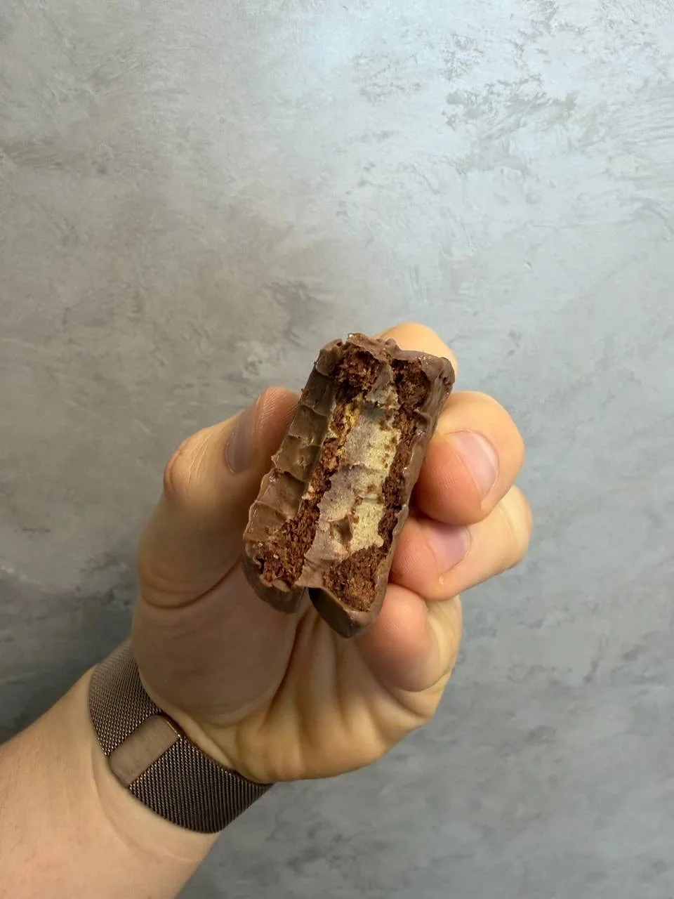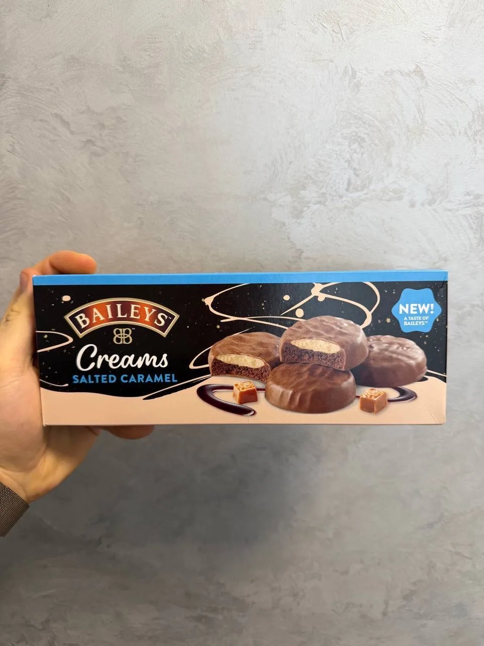 Печенье с легким сливочно-алкогольным привкусом, очень хрустящее. Внутри крем с соленой карамелью, сверху шоколад. Это действительно вкусно, но, естественно, своих денег не стоит.