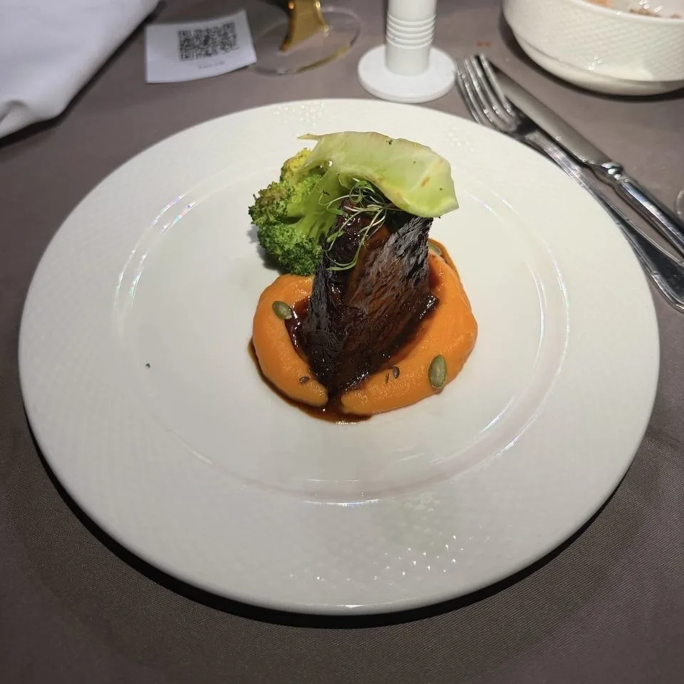▪️Говяжье ребро (1850₽) — 3 дня маринуется в специях, затем обжаривается на гриле, подают на реберной кости с маринованным острым перцем чили, картофельным гратеном и соусом BBQ на квасном сусле.