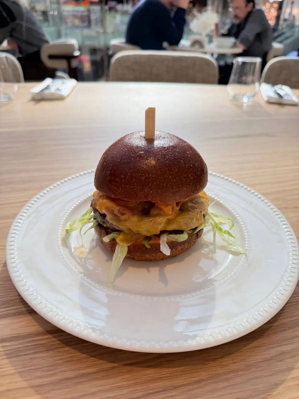 ▪️Бургер (870₽) — мраморная говядина, бекон, свежие томаты, маринованный красный лук и огурцы, салат, сыр. Точно такой же бургер, как в Ava, но только с беконом. Приготовлен идеально.