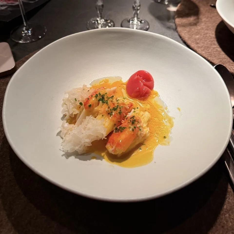 ▪️Стейк миньон с лобстером (9700₽) — филе-миньон и лобстер су-вид обжаривают, подают с соусом пепе верде, поливают соусом биск, украшают осетровой икрой.