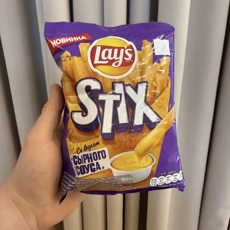 Пшенично-картофельные палочки, слегка похожи на Cheetos, но более твердые. По вкусу норм, напоминают сырный соус из Мака, под пиво пойдет. Но второй раз брать бы не стал, лучше взять обычные Lay’s. Купил в Лавке, стоит 99₽.