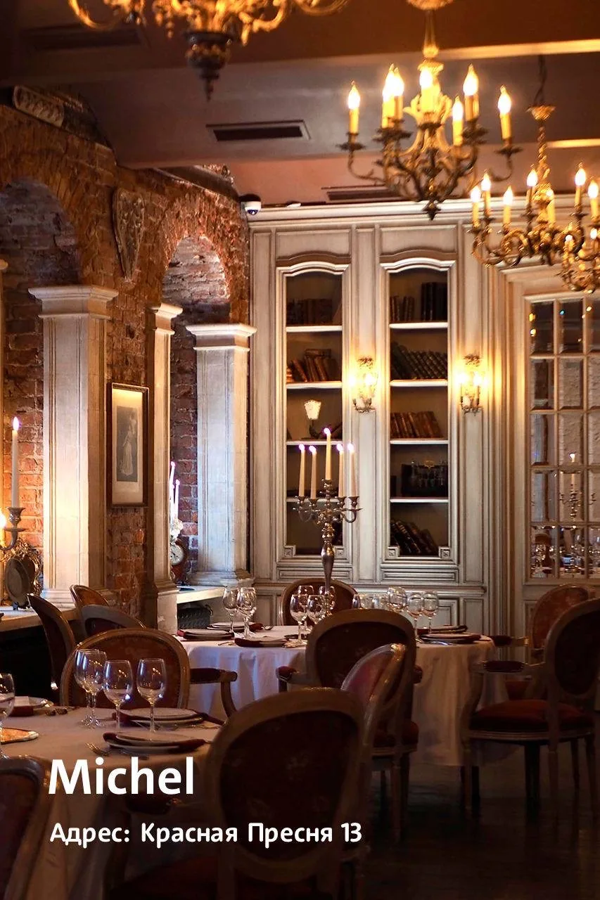 ▪️Michel — в меню традиционные блюда и авторские интерпретации, в интерьере антикварные предметы, гравюры, зеркала в резных рамах, кованые люстры, фигурная лестница.