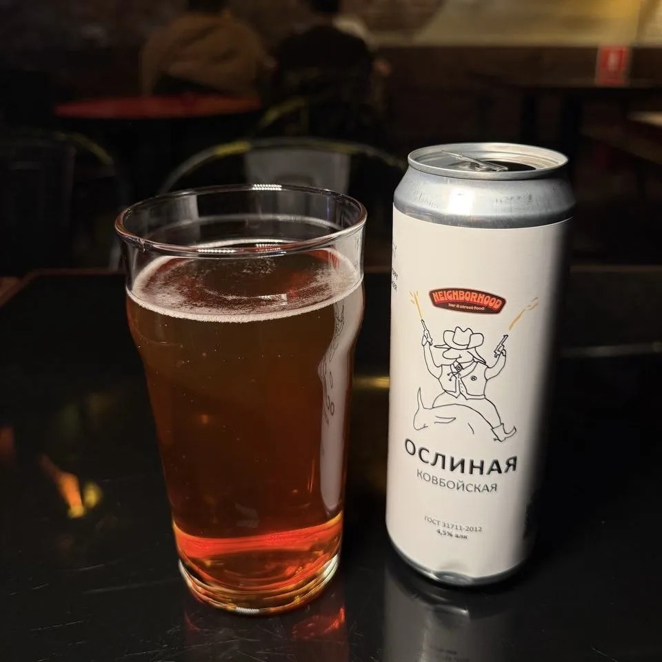 ▪️Ослиная ковбойская (490₽) — светлое нефильтрованное пиво, достаточно горькое, с ярким вкусом хмеля. Вроде как варят специально для бара.