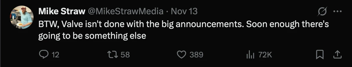 "Кстати, Valve ещё не закончила с громкими анонсами. Скоро будет что-то ещё"