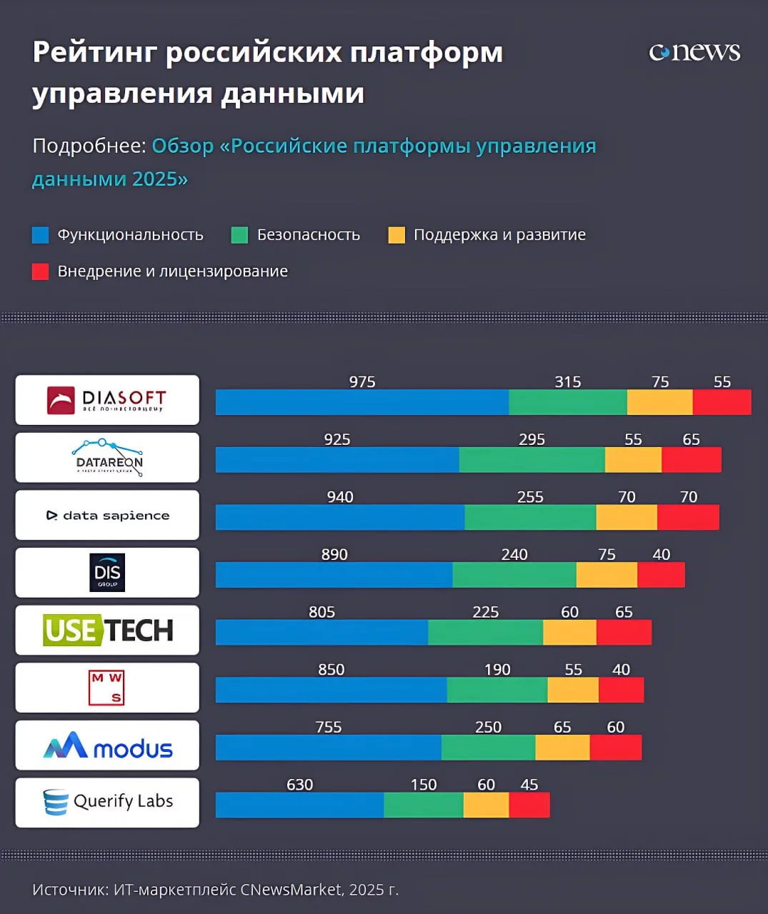 CNewsMarket впервые подготовил рейтинг DMP, в который вошли 15 отечественных платформ. Аналитики оценивали разработки по комплексу критериев, включая функциональность, технологическую зрелость, безопасность, качество пользовательского интерфейса и степень автоматизации.