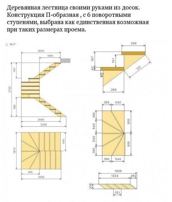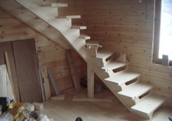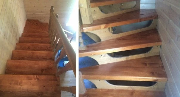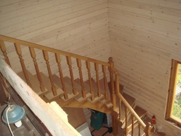 Деревянная лестница с забежными ступенями