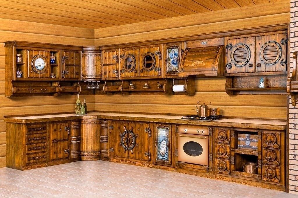 Резная кухня под морскую тематику.