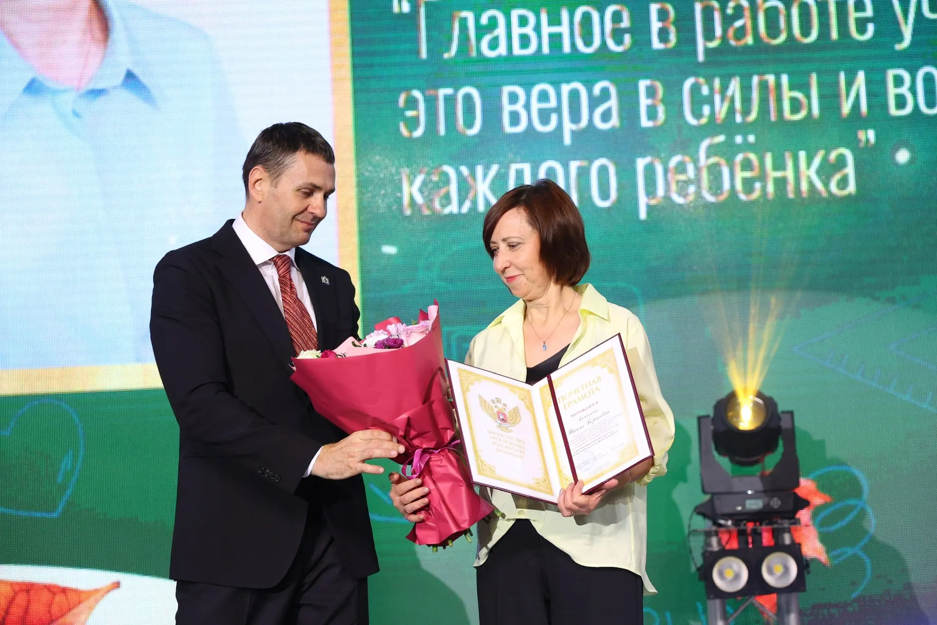 Мы благодарим сегодня всех, чьё призвание — не просто передавать знания, но и своим примером формировать в наших детях лучшие человеческие качества. Без ваших труда, терпения и любви к выбранному делу невозможно дальнейшее развитие. Ваш профессионализм — гарантия будущего всей России.