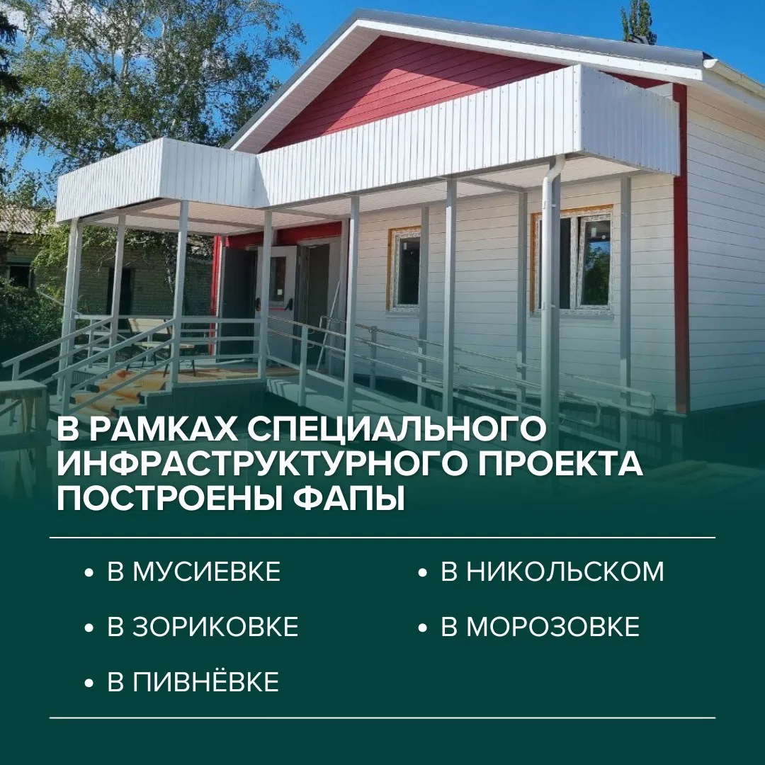 🏥За два минувших года в населенных пунктах округа были возведены 6 ФАПов и 1 амбулатория в Новострельцовке.