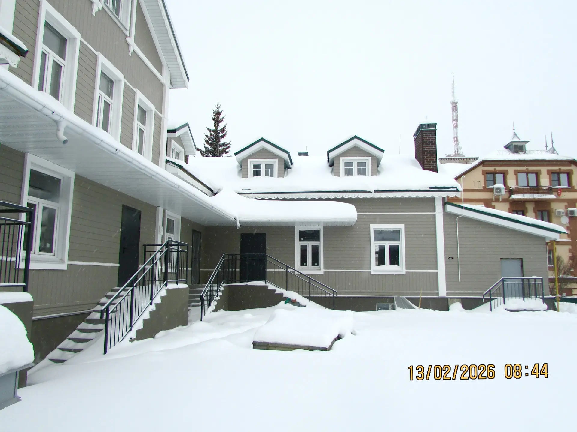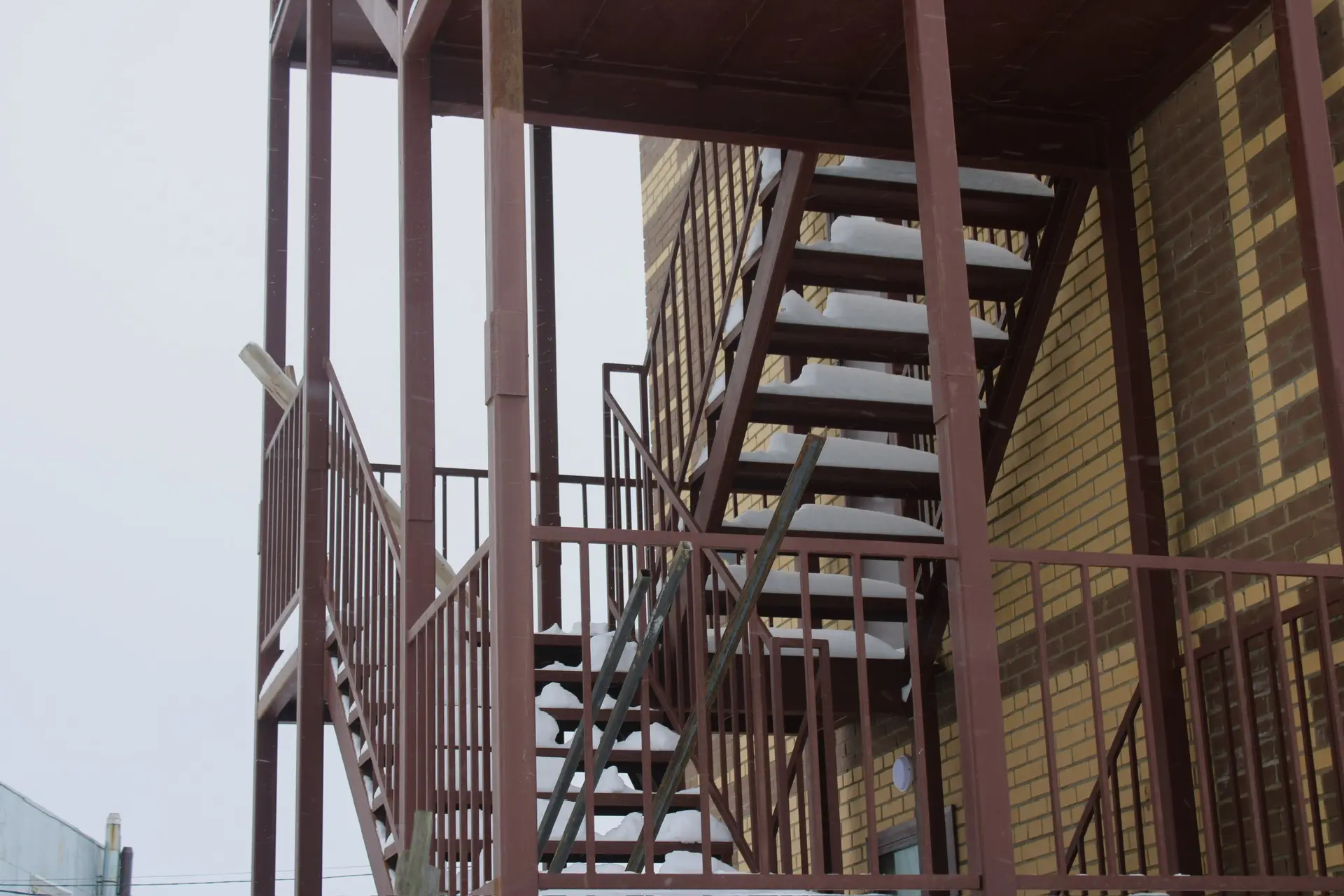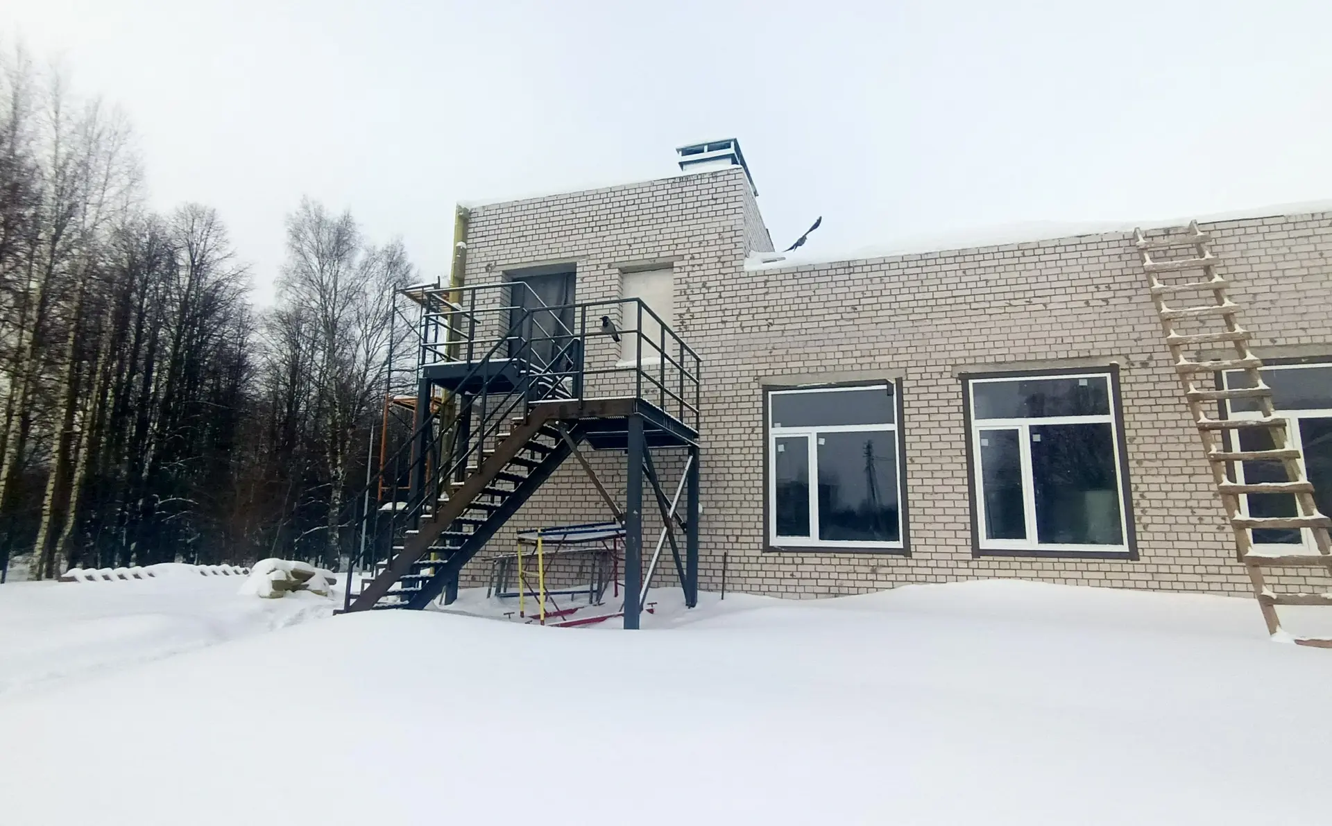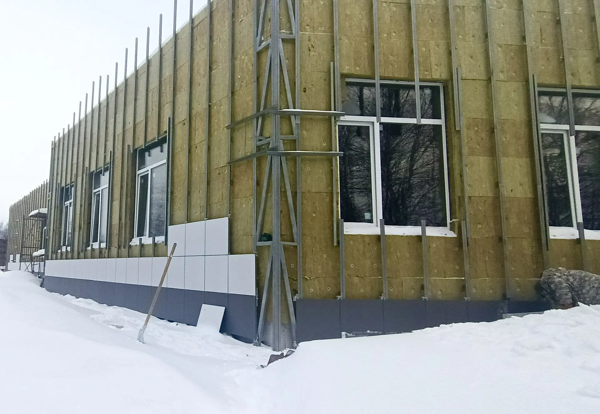 -монтируют вентилируемый фасад снаружи. Завершено устройство наружной металлической лестницы.