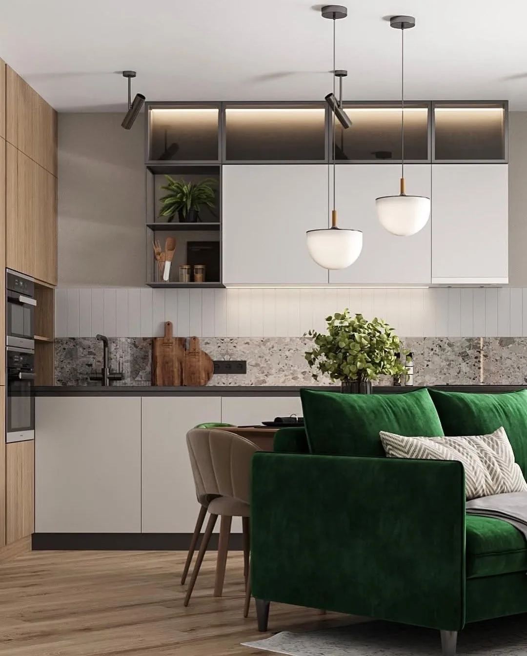 📎Кухня, столовая и гостиная объединены в единое пространство.
