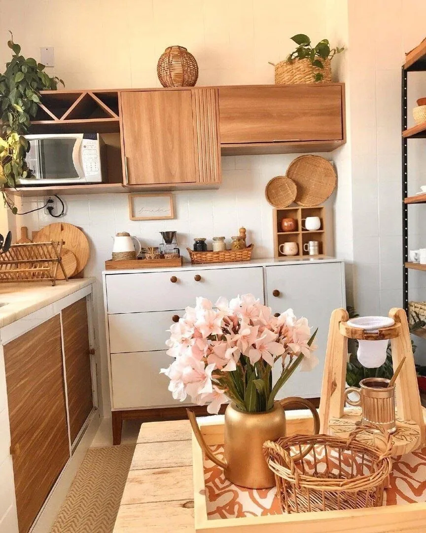 Стиль кантри характеризуется использованием натуральных материалов, природных цветов, мебели с элементами старины и обилием декора. Стиль предполагает простоту, уют и лёгкость оформления.