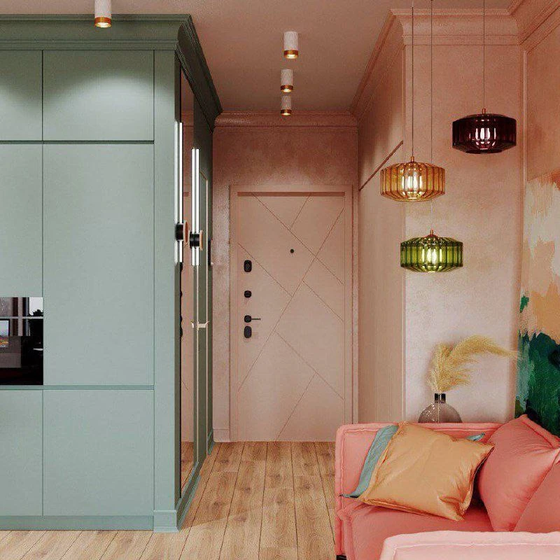 Дизайн выполнен в стиле Нео Мемфис. Метраж: 29 кв.м.