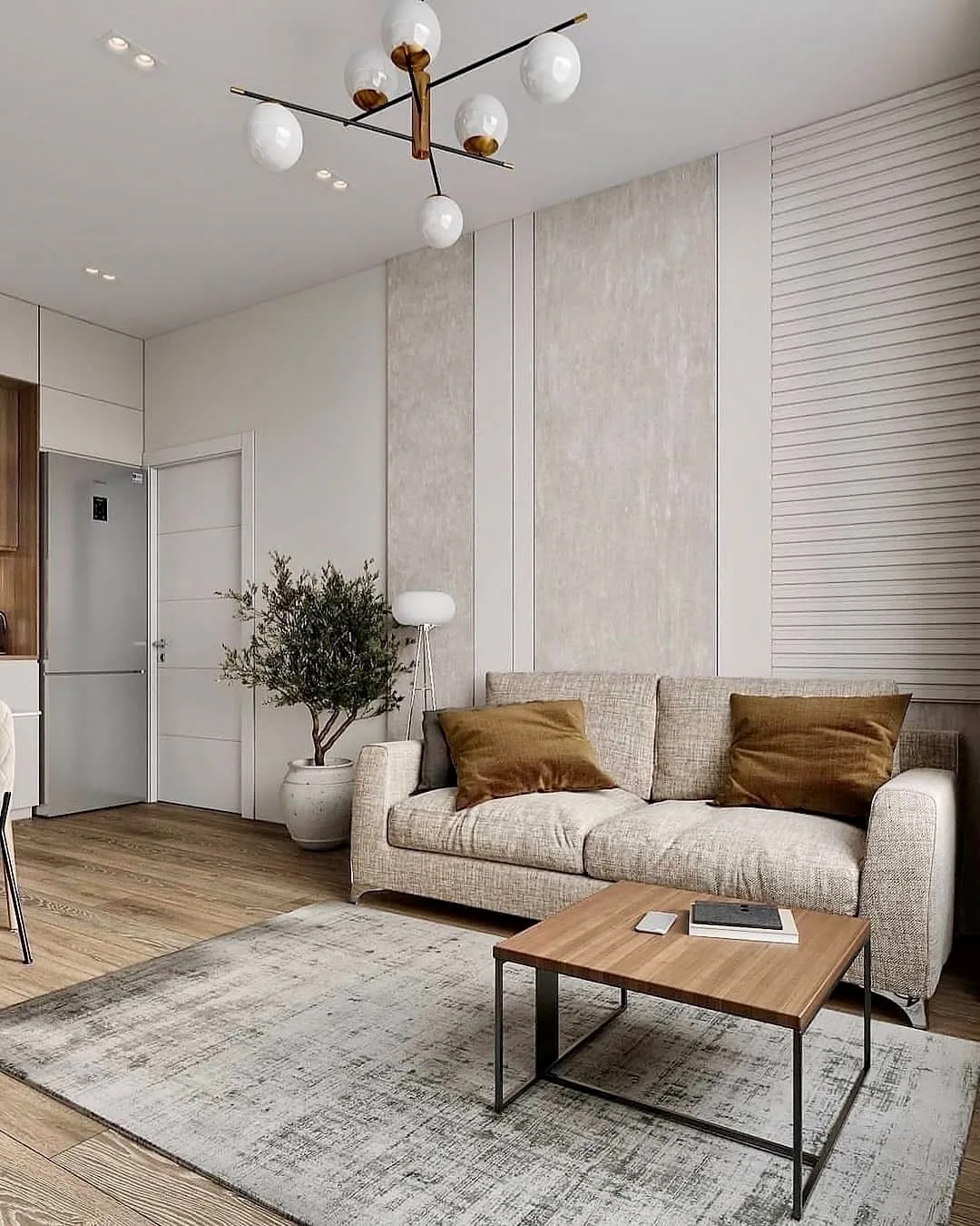 😀УСТАРЕЛО: Люстра по центру и всёОдна люстра по центру потолка и всё. Так делали «по умолчанию», но сейчас это смотрится скучно, не даёт глубины и часто делает помещение плоским.