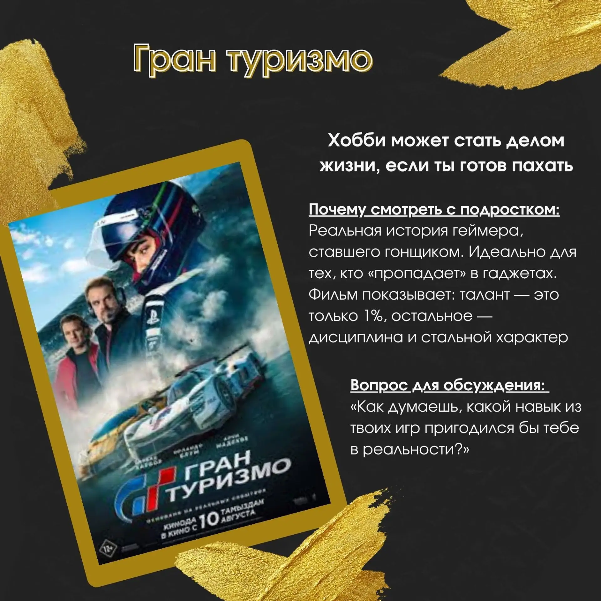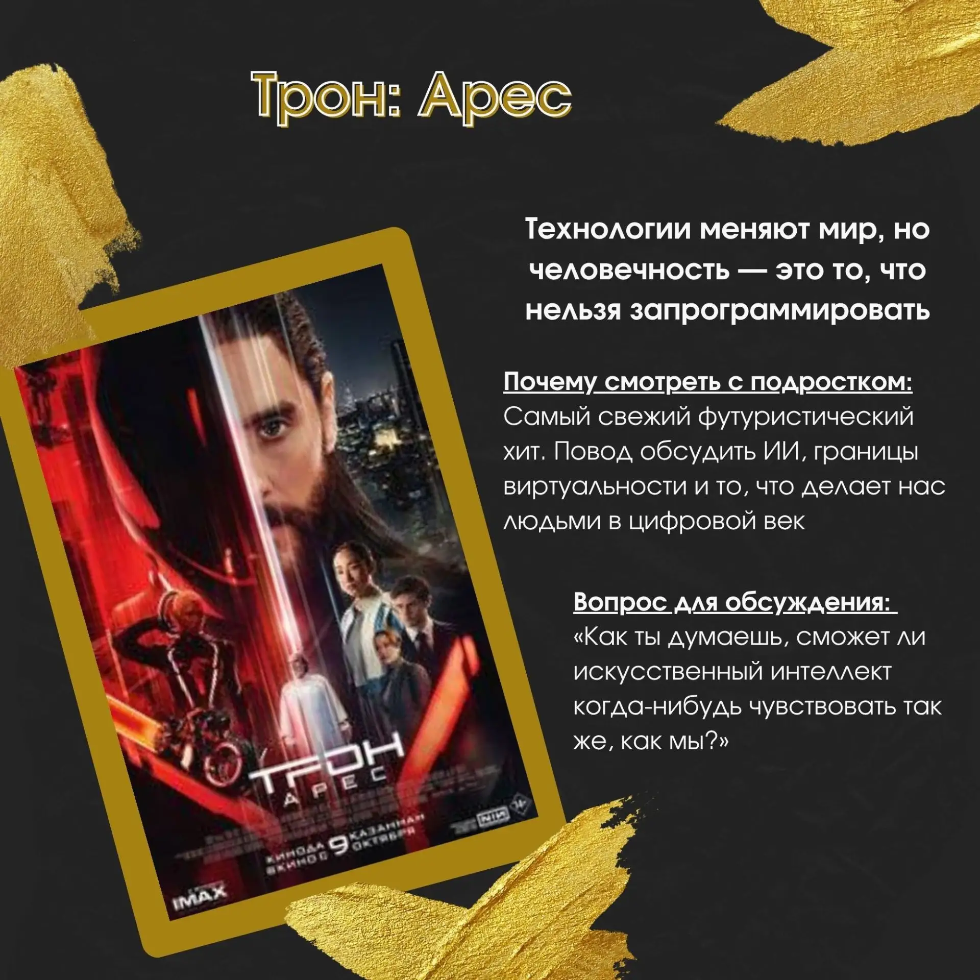 Почему стоит посмотреть эти фильмы вместе? Внутри каждого — не просто драйв и графика, а важные темы: от поиска себя в цифровом мире до умения делать сложный выбор. Описания каждого фильма и идеи для обсуждения — уже на карточках! ➡️