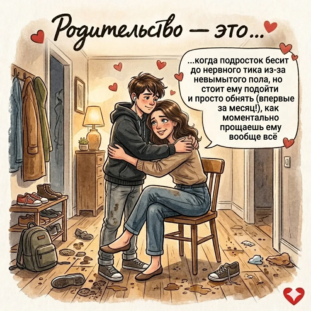 🧩 Дело в том, что ваши интересы столкнулись лбами. Пока подросток не видит в просьбе личного смысла (того самого «ДЛЯ ЧЕГО?»), он будет саботировать любое ваше слово. Из-за этого и рождаются бесконечные войны за немытую посуду, оценки и телефон под подушкой.