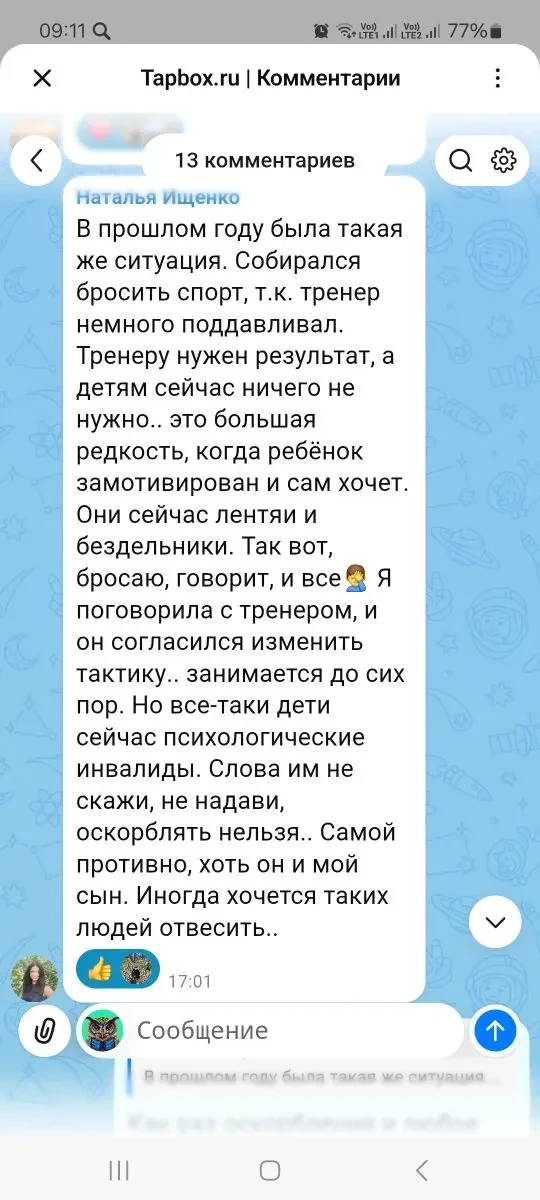 В следующих кружочках комментирую вот этот ответ на пост про бунт ребенка против спорта (https://max.ru/deti__podrostki/AZ09yRQ6GOQ)
