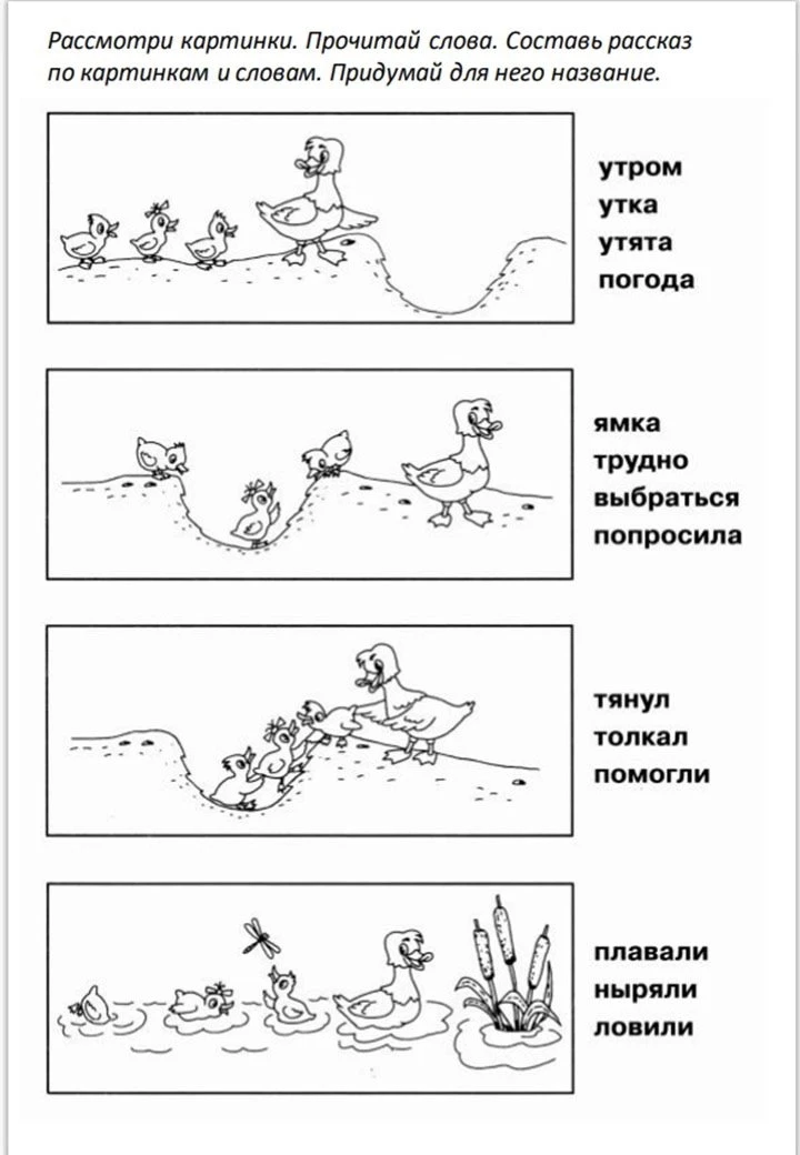 Рассмотрите картинку, прочитайте слова и составьте рассказ по картинкам.