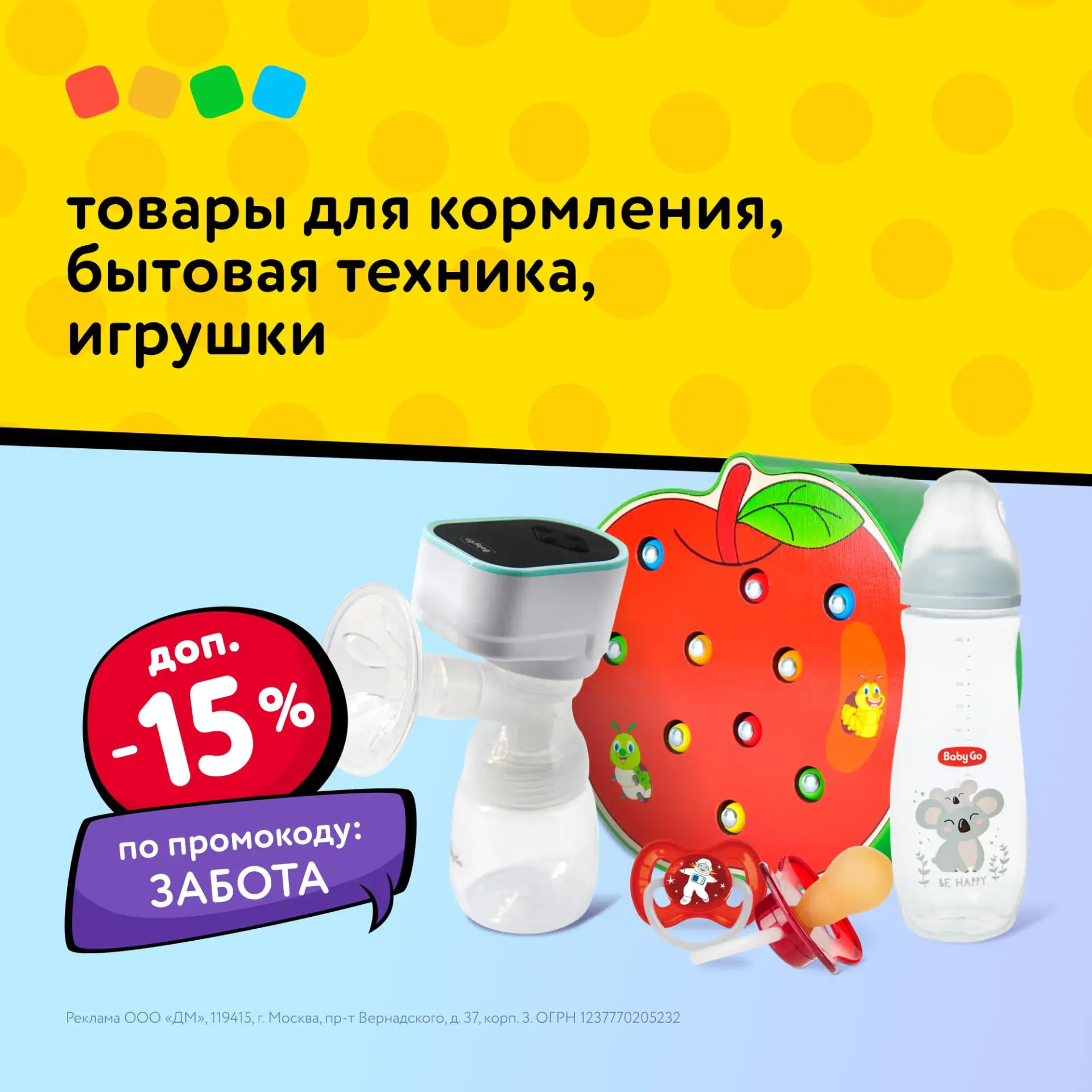 ➡ -15% по промокоду ЗАБОТА на аксессуары для кормления, бытовую технику и игрушки