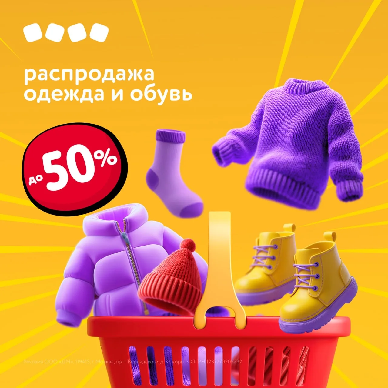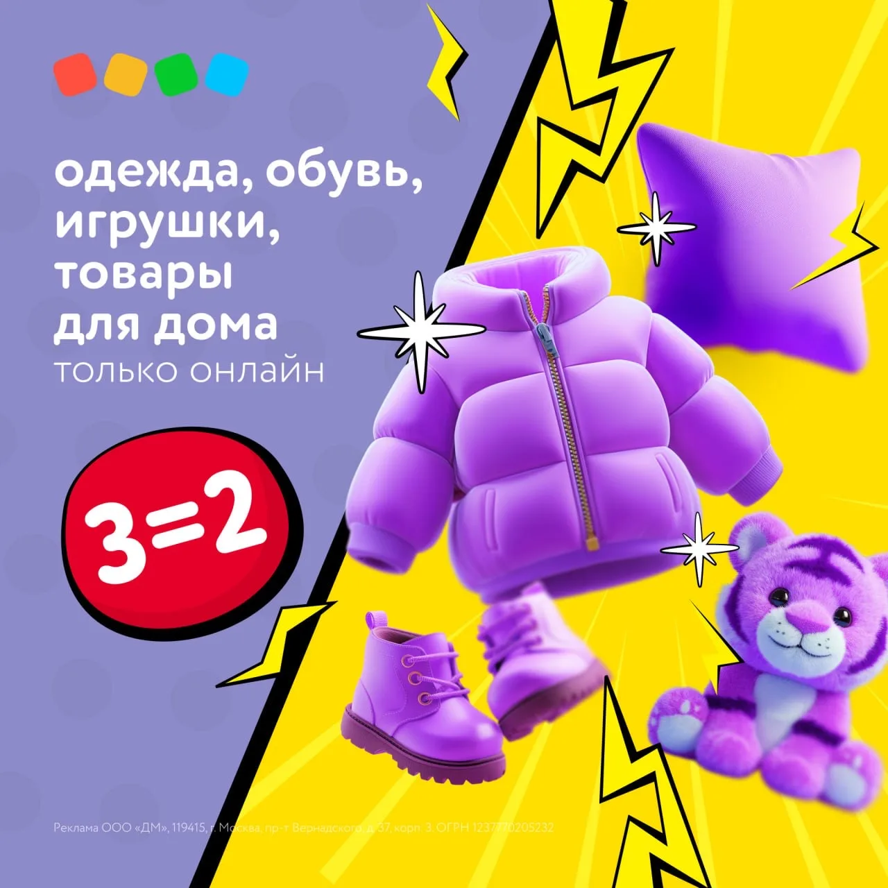 🔵 Акция 3=2 на одежду и обувь, игрушки, товары для дома