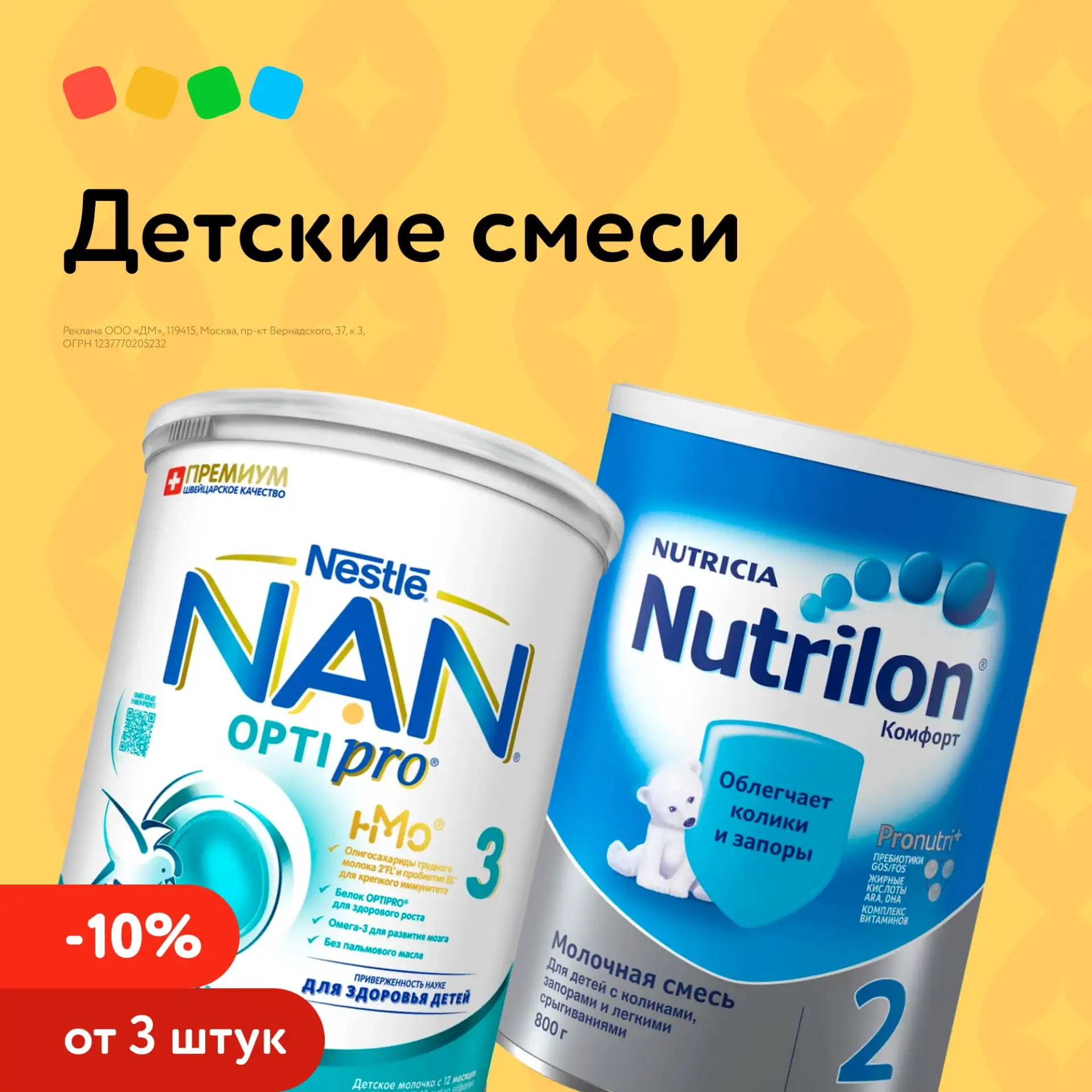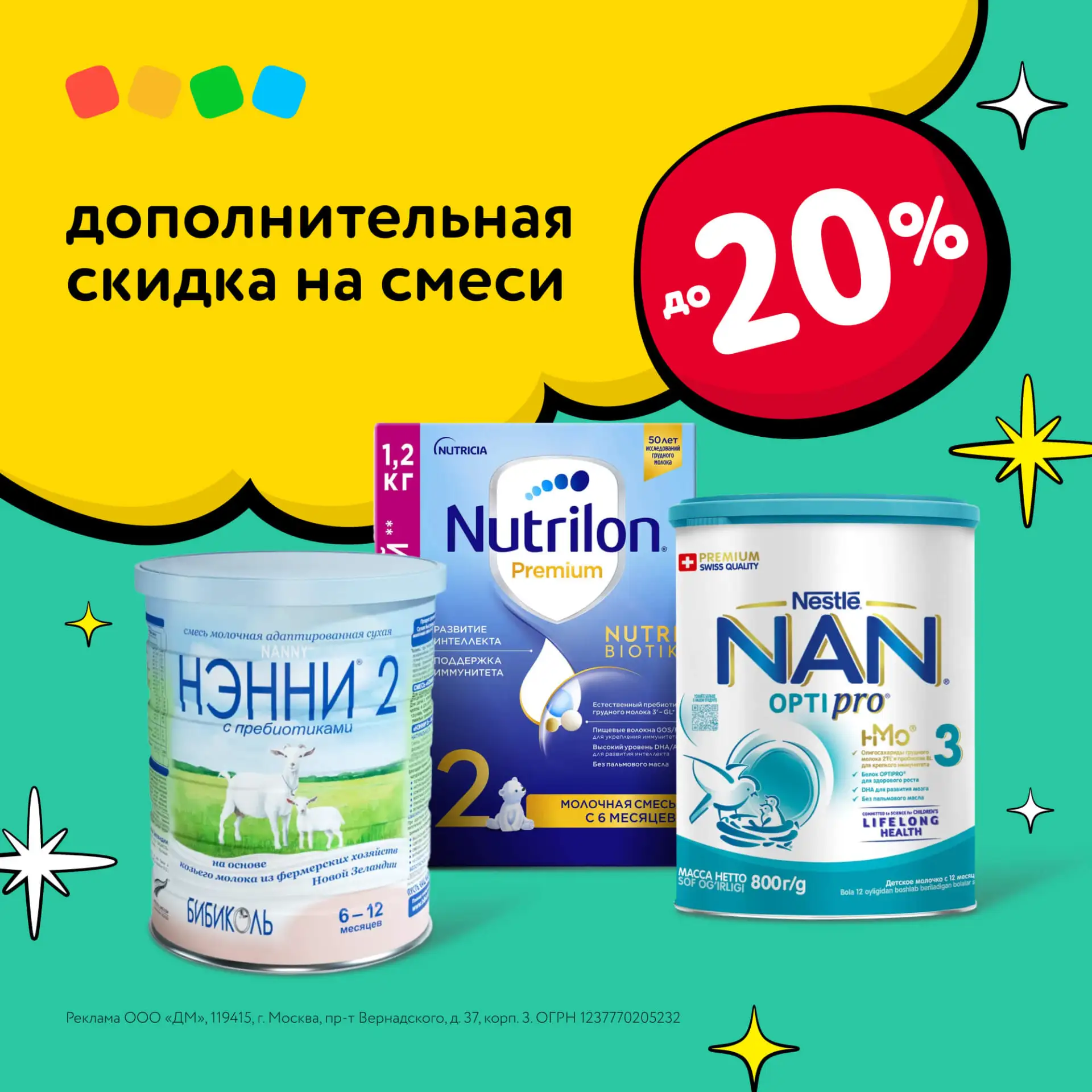 👉 Дополнительная скидка 10% при покупке 3 детских смесей, 15% — при покупке 5 детских смесей
