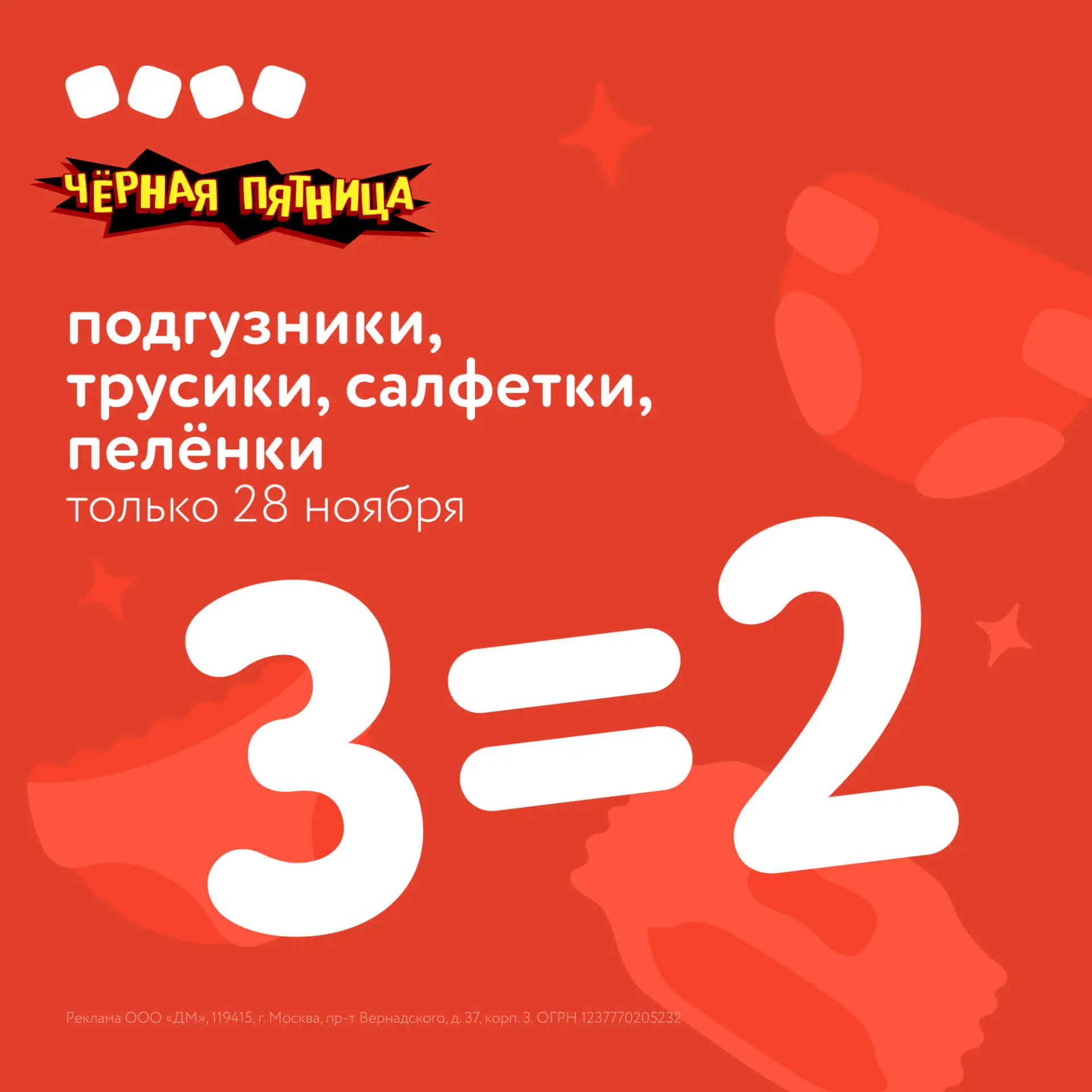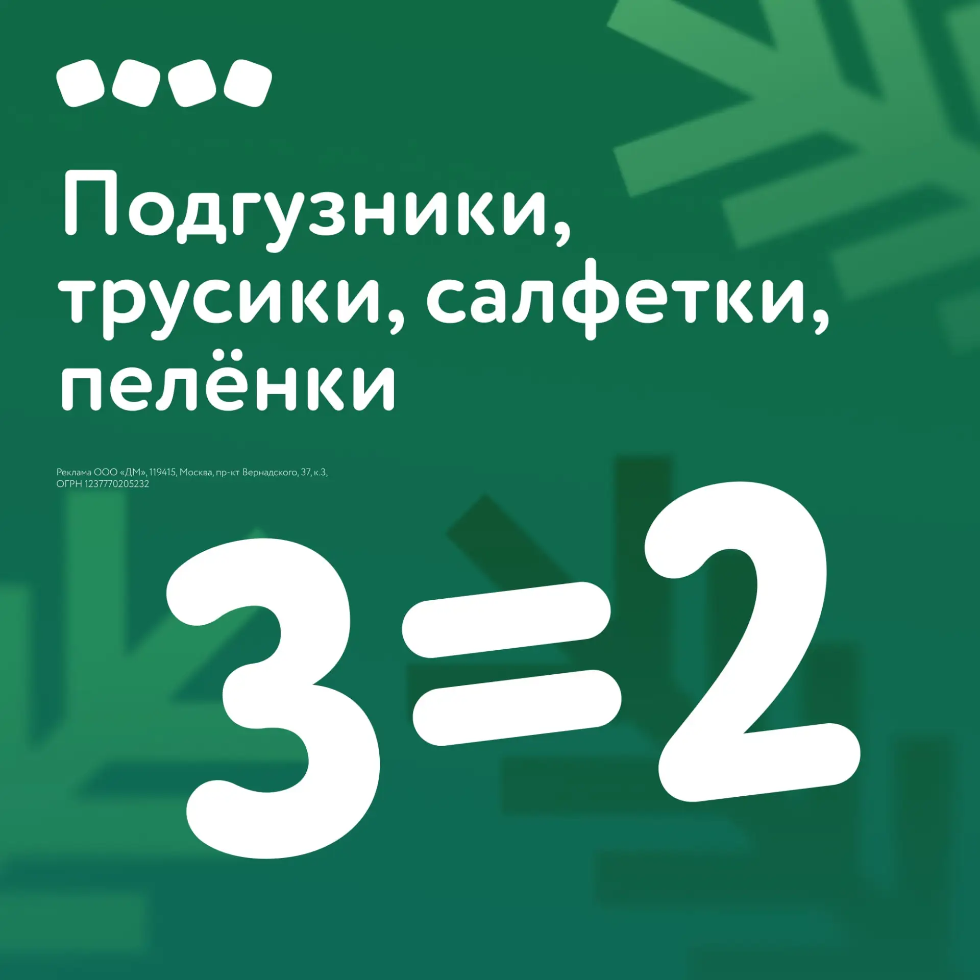 👉 Акция 3=2 на подгузники, трусики, салфетки и пелёнки