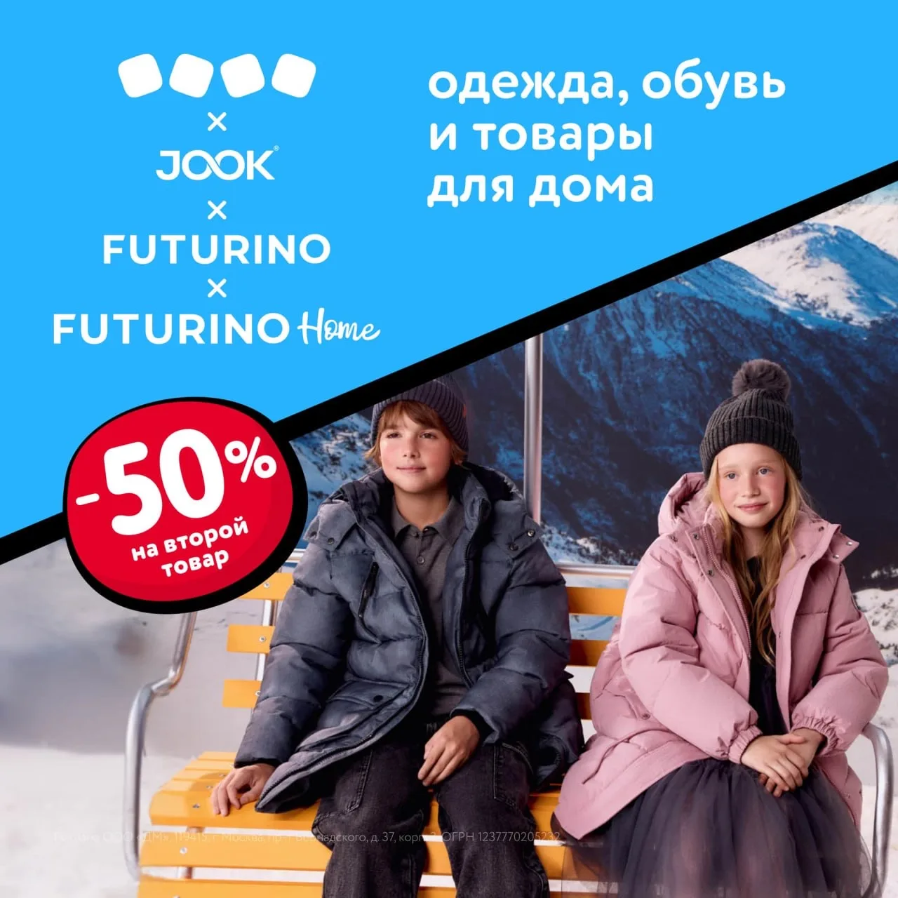 Дополнительная скидка 50% на второй товар из ассортимента одежды Futurino, обуви Jook и товаров для дома Futurino Home 😍