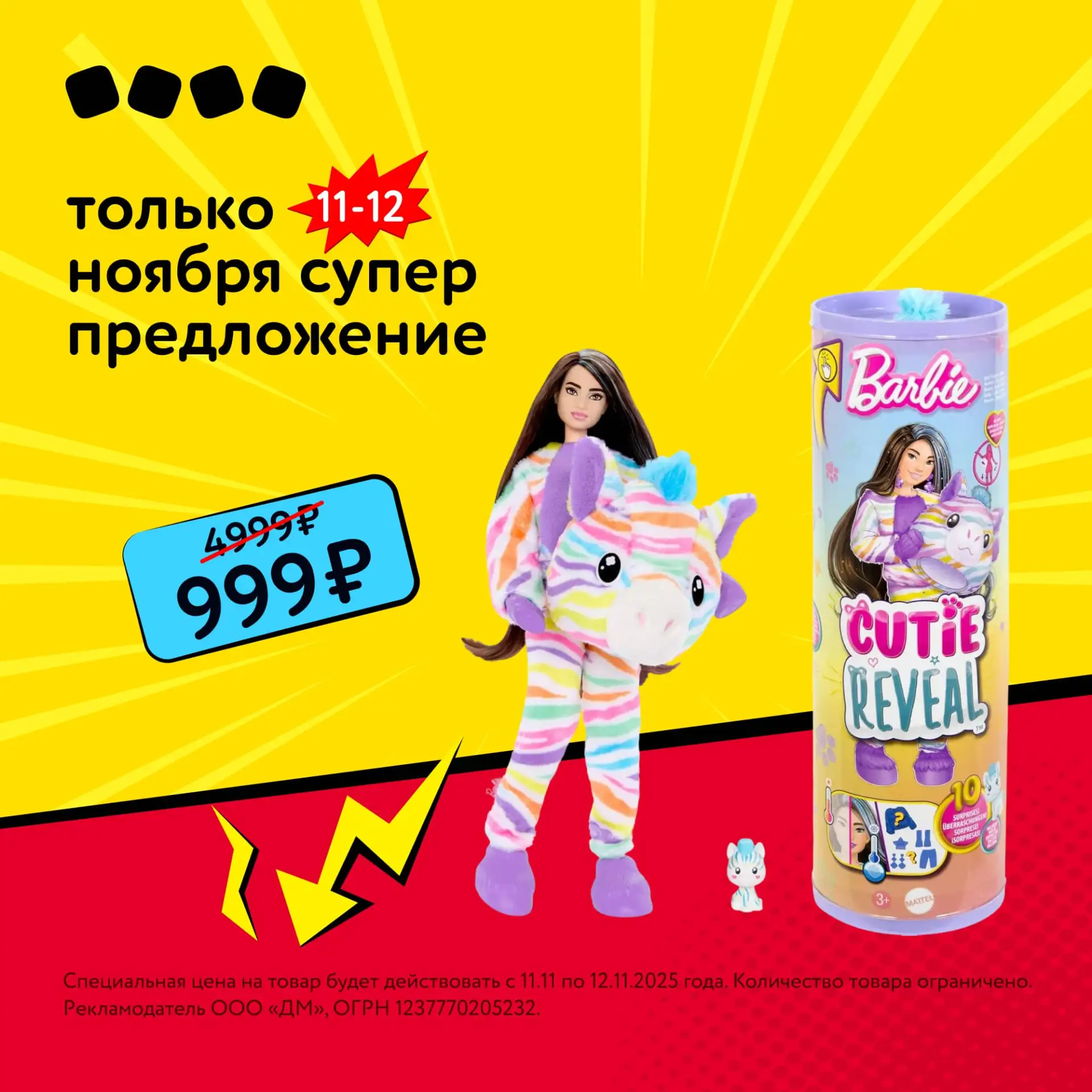 Только с 26 по 28 ноября при покупке трёх товаров из ассортимента игрушек, участвующего в акции, один из них вы получаете в подарок!