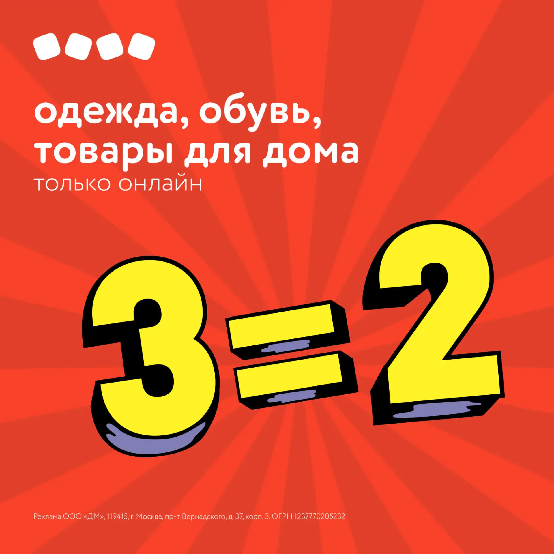 Ответ: наша новая акция 3=2 на одежду и обувь, игрушки, товары для дома 🔥