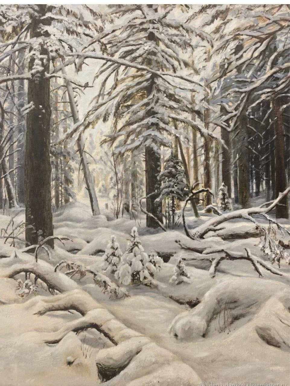 У него есть прекрасные работы про зимний лес. И его лес какой-то сказочный. Зимних пейзажей у Шишкина мало, потому что он писал его всегда с натуры и в мороз.