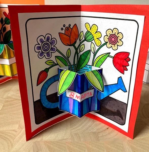 Хорошая идея объёмной поздравительной открытки на 8 марта.