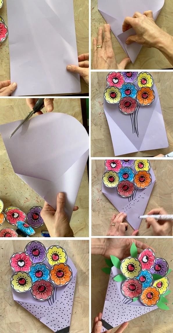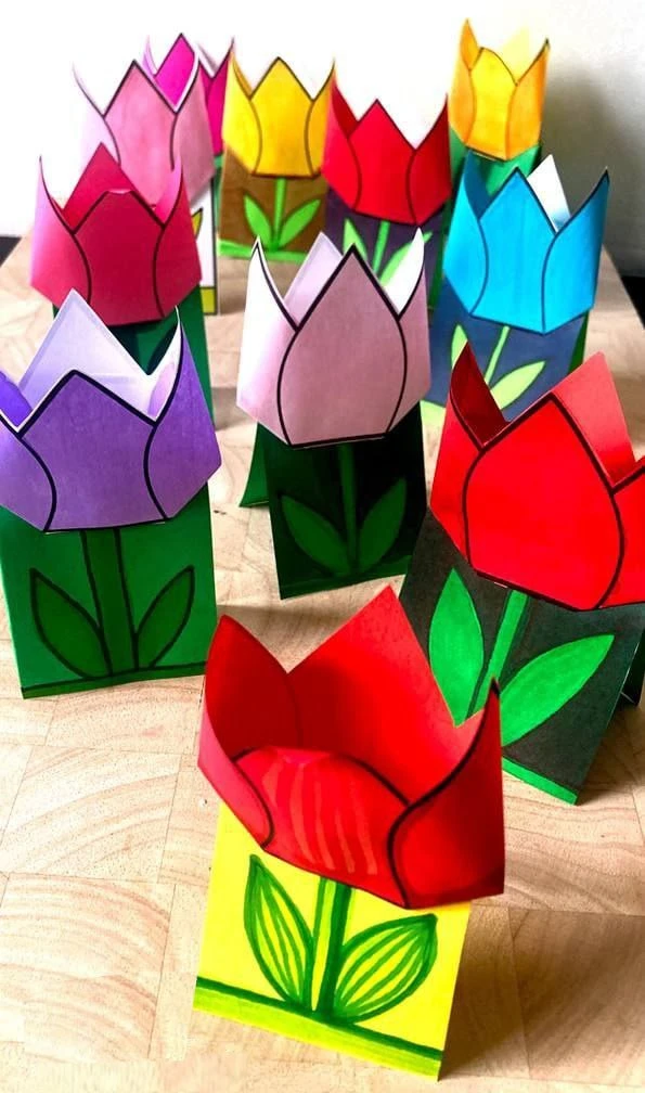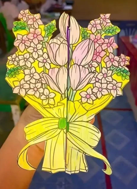 💐 Букет цветов на 8 марта. Бумажные поделки с шаблонами.