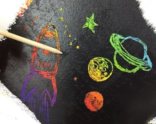 Чтобы нарисовать рисунок на тему космос в технике граттаж, вам потребуются: